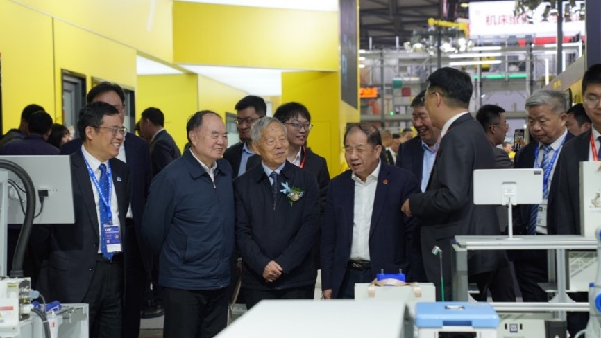 部分参会领导与专家陪同国家制造强国建设战略咨询委员会主任周济院士等参观调研了第十三届中国数控机床展览会(CCMT 2024),重点考察了交大智邦、华中数控、拓璞数控等国内高端数控装备领域的高校科创领军企业。