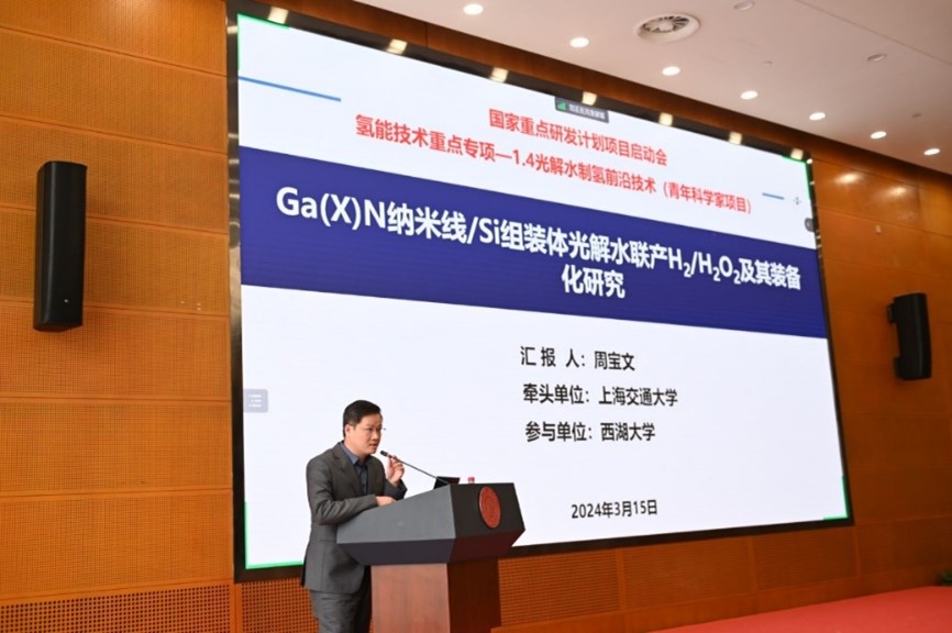“Ga(X)N纳米线/Si组装体光解水联产H2/H2O2及其装备化研究”青年科学家项目由周宝文副教授担任负责人。项目咨询专家、华东师范大学吴海虹教授,四川大学张茹教授,中国科学院青岛生物能源与过程研究所孙晓岩研究员,中国科学院化学研究所章宇超研究员以及中国科学院生态环境研究中心王征研究员等出席项目实施方案论证会。周宝文副教授介绍了项目的总体实施方案,与专家组进行了交流讨论。与会专家就项目实施方案、高水平成果产出、人才队伍建设提出了指导意见和建议。