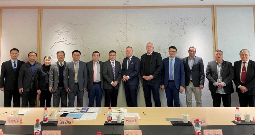 3月18日,瑞典皇家理工学院(KTH)常务副校长Mikael Lindström、斯堪尼亚(Scania)公司相关负责人一行访问beat365中文官方网站,并开展学院专场座谈交流。会前,校党委书记杨振斌会见了Mikael Lindström一行。学院党委书记胡永祥、副院长朱磊,以及相关教师参加了座谈交流。