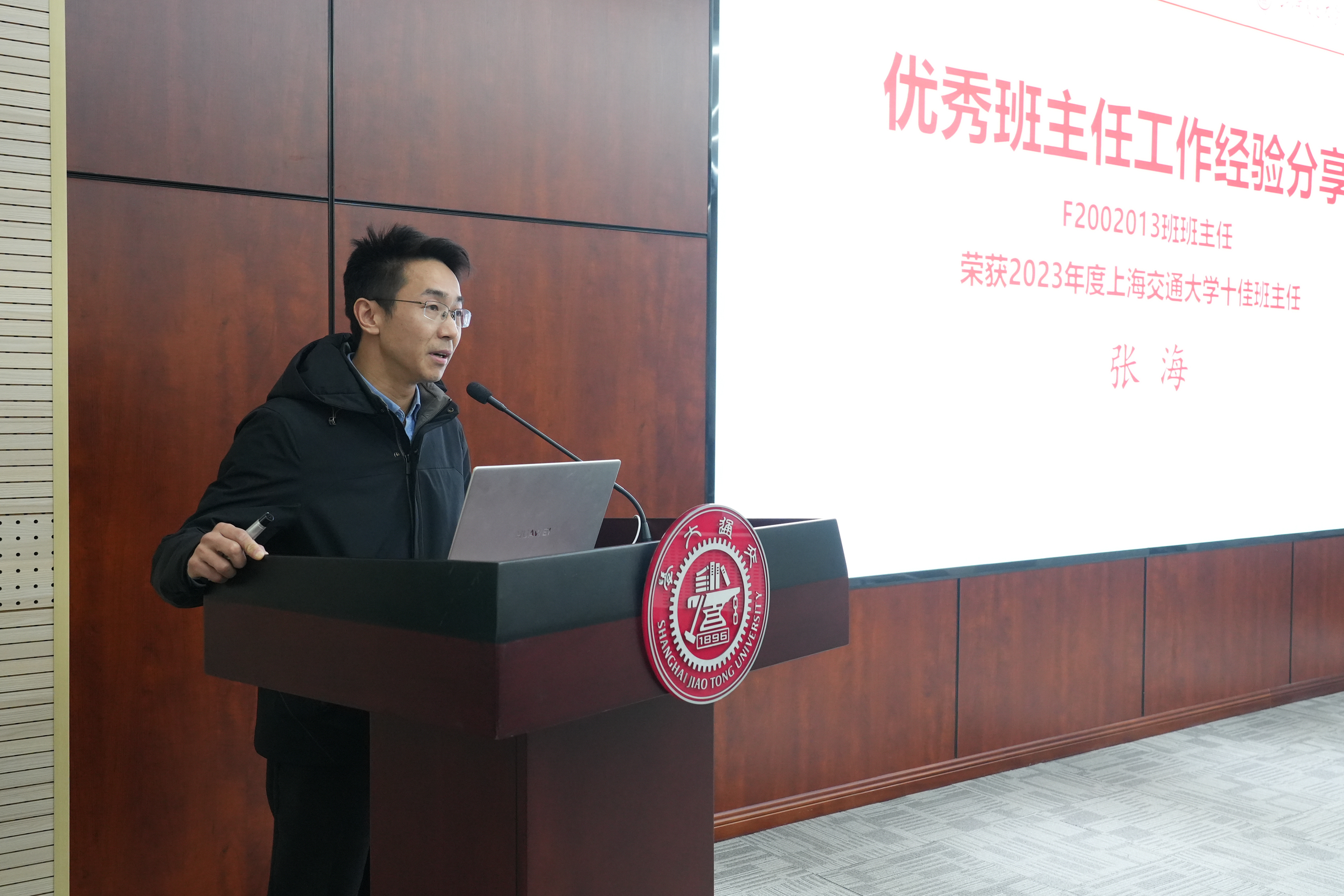 优秀班主任代表、2023年度校十佳班主任张海分享了在学生思想价值引领、营造良好学习科研氛围以及提升班集体凝聚力等方面的特色做法。