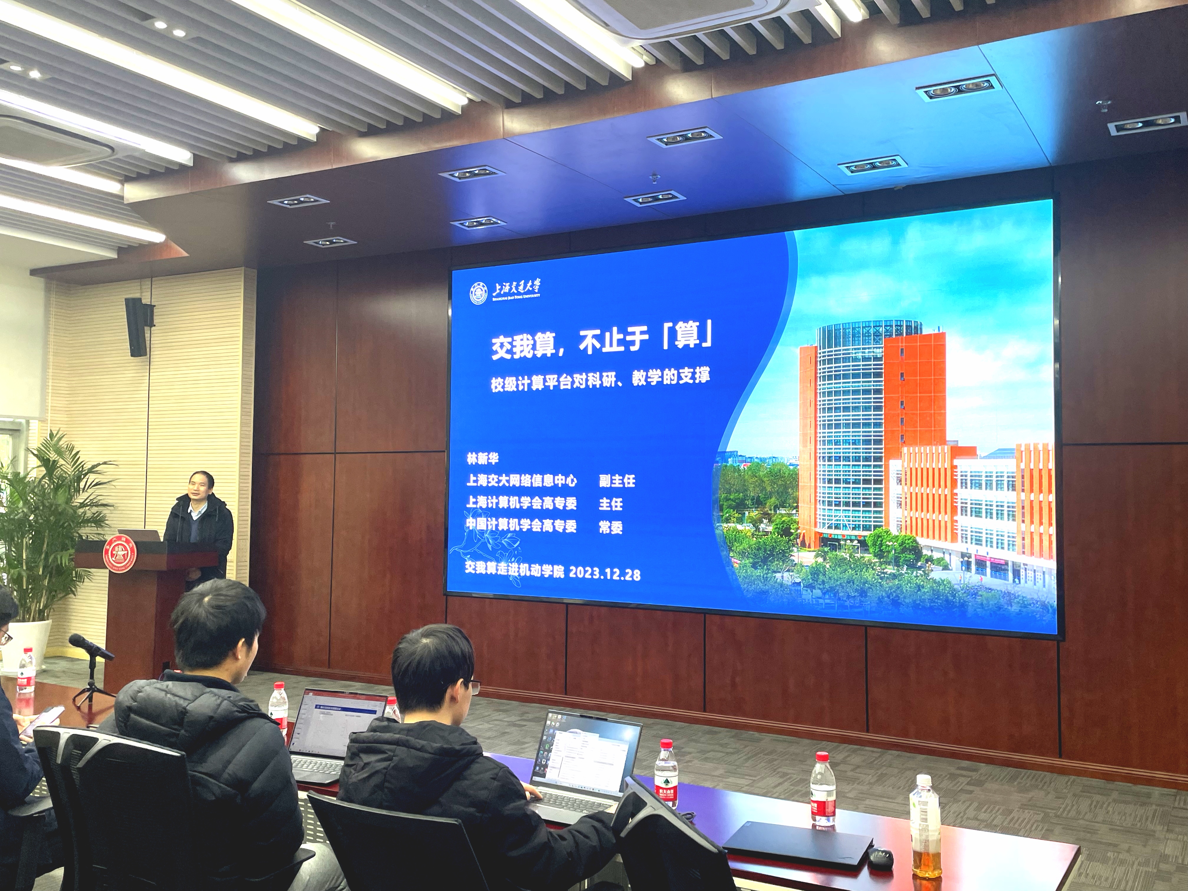 为助力师生更好地了解和利用校级计算平台资源,12月28日,校网络信息中心副主任林新华带领“交我算”团队一行,走进beat365中文官方网站,为学院师生作了五个主题的“交我算”平台服务与应用分享。学院副院长瞿叶高、师生代表等30余人参加了活动。