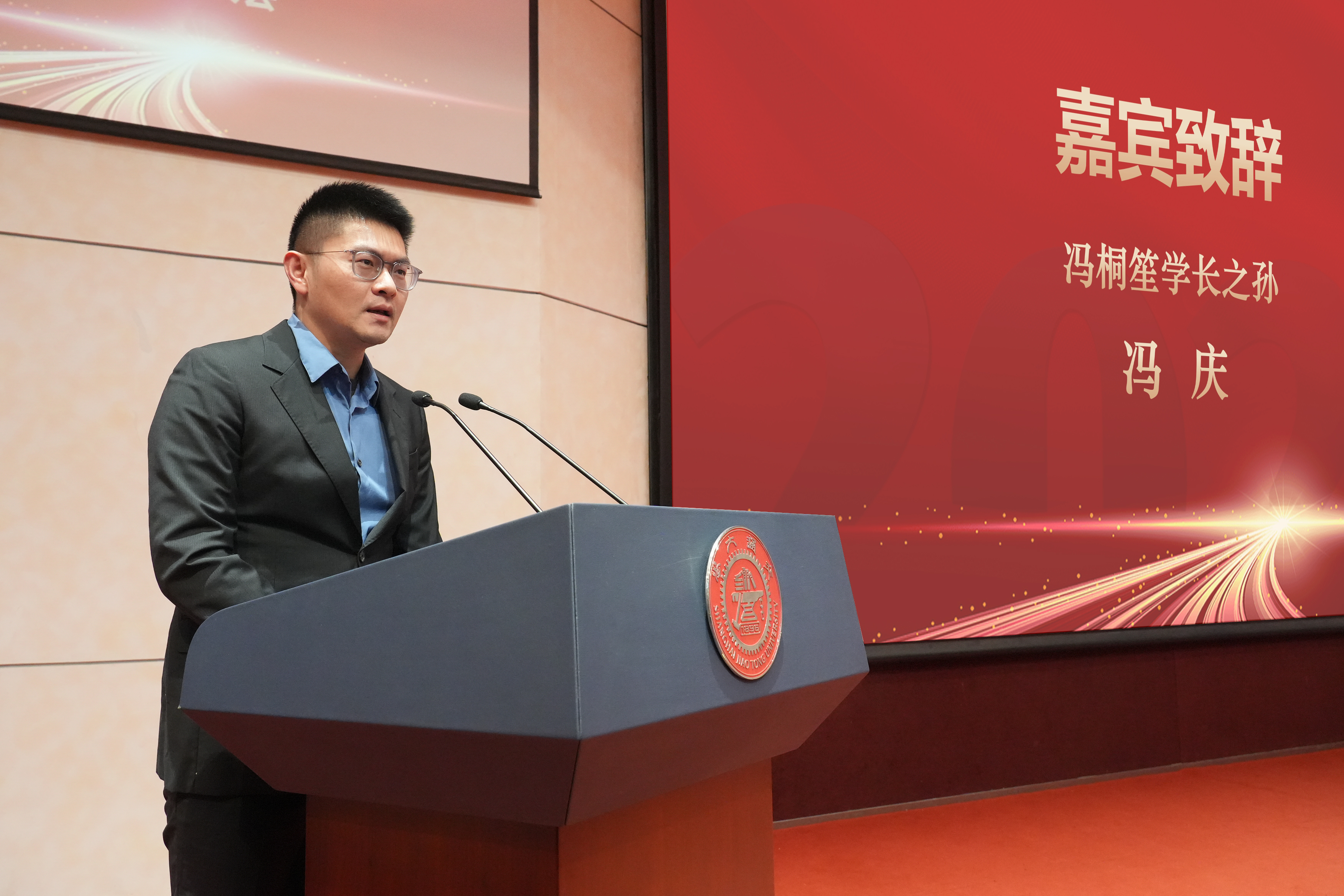 1947届校友冯桐笙学长之孙、影力资本合伙人冯庆回顾了冯桐笙学长的求学故事,勉励大家树立远大理想,厚植家国情怀,品学兼修、笃行致远,在科学研究中砥砺报国之志。
