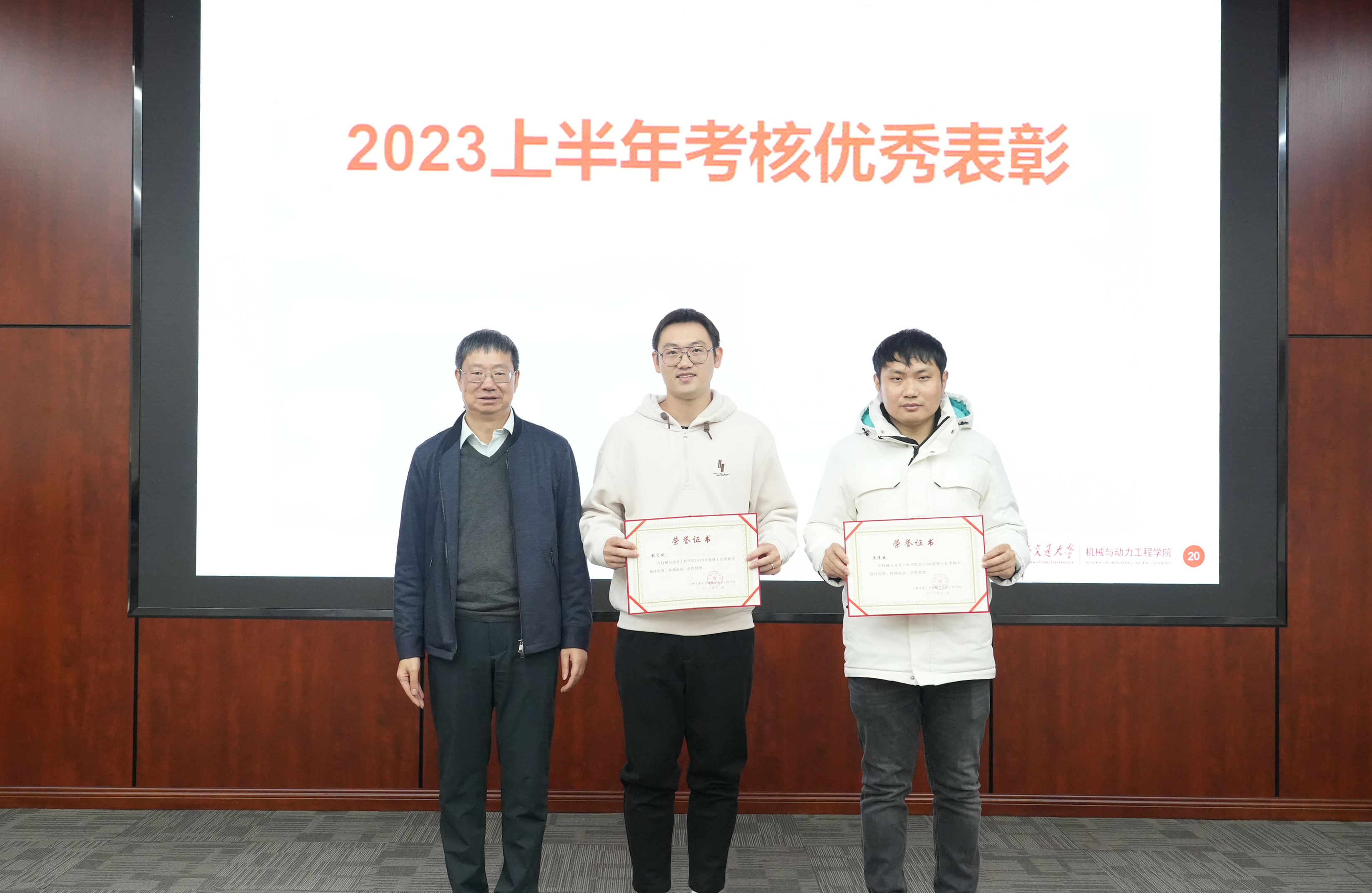 会上颁发2023上半年博士后考核“优秀”证书,本次共有刘云鹏、许嘉兴、赵林川、张宁斌和黄清云5位博士后考核优秀。