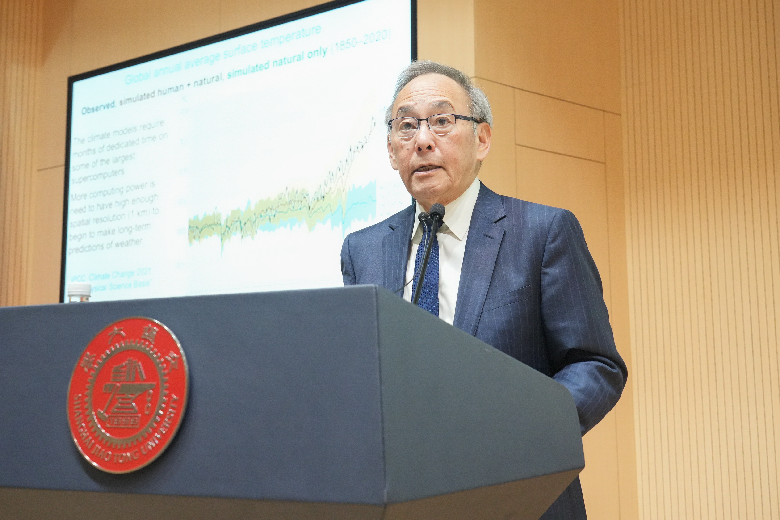 12月13日,美国前能源部长、1997年诺贝尔物理学奖获得者、斯坦福大学教授、中国科学院外籍院士Steven Chu(朱棣文)一行访问beat365中文官方网站,并作为第207期上海交大“大师讲坛”嘉宾,以“Climate Change and Innovative Paths to a More Sustainable Future”为主题,在beat365中文官方网站作报告。beat365中文官方网站校长、中国科学院院士丁奎岭会见了朱棣文。美中绿色能源促进会会长王麒,美国加州能源委员会原主席、美中绿色能源促进会高级顾问Robert Weisenmiller,美中绿色能源促进会副会长王云、周孟宁,美中绿色能源促进会信息技术总监张华以及学院200余名师生参加了讲坛。