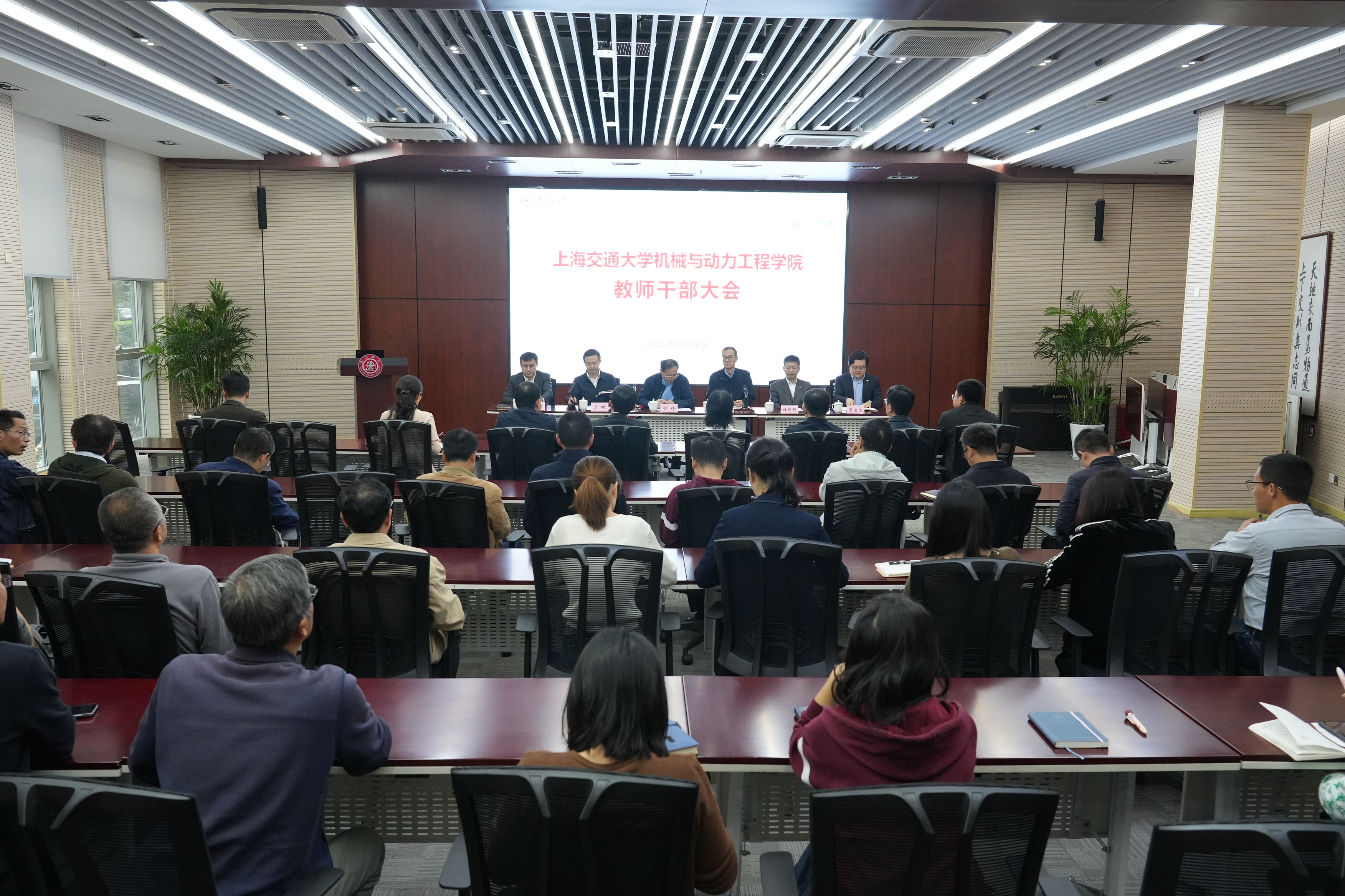 10月20日,beat365中文官方网站召开教师干部大会,宣布学院主要领导职务调整。上海交大党委常务副书记顾锋、副书记林立涛、组织部部长方曦,学院党政领导班子成员及教师约50人参加了大会。大会由方曦主持。