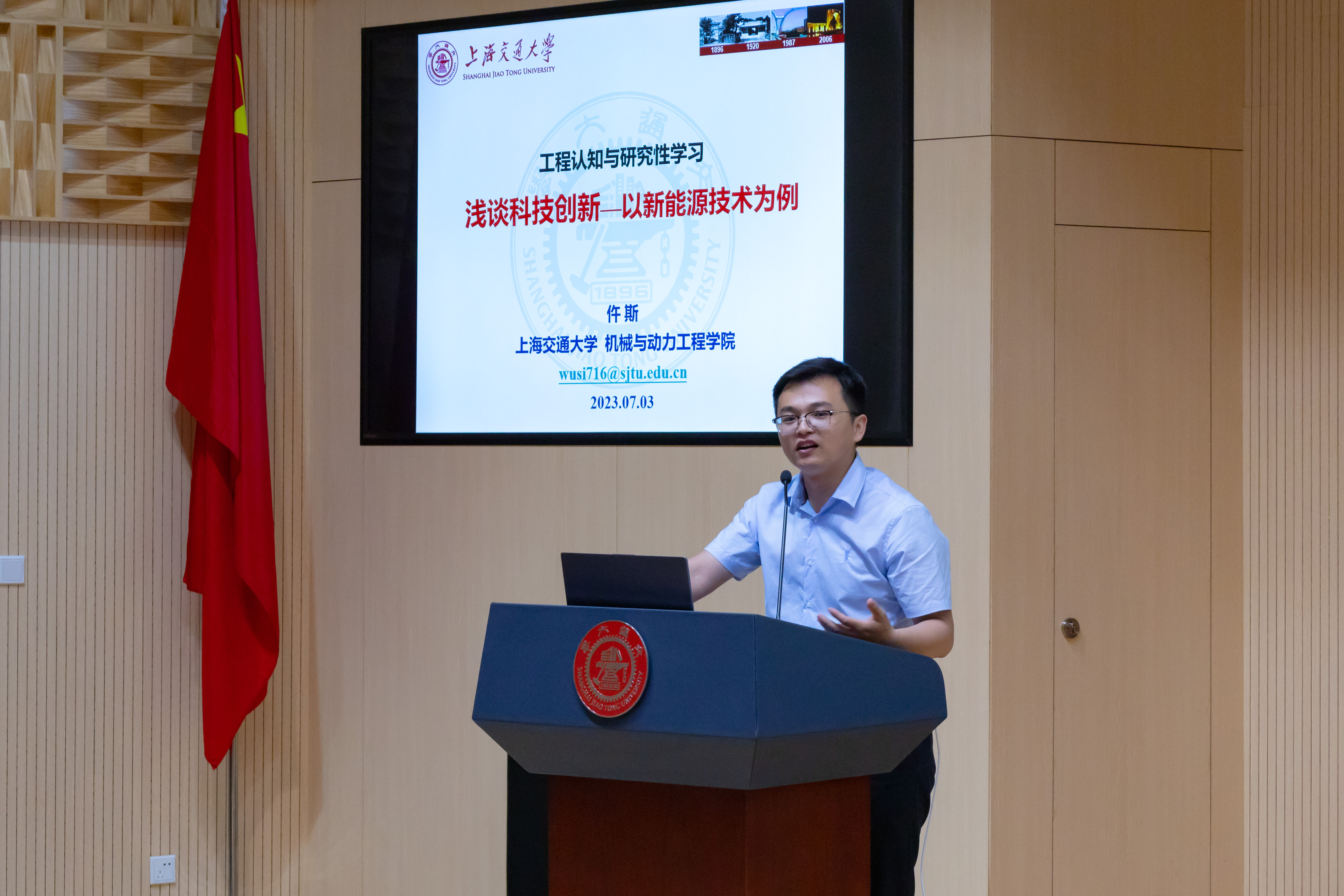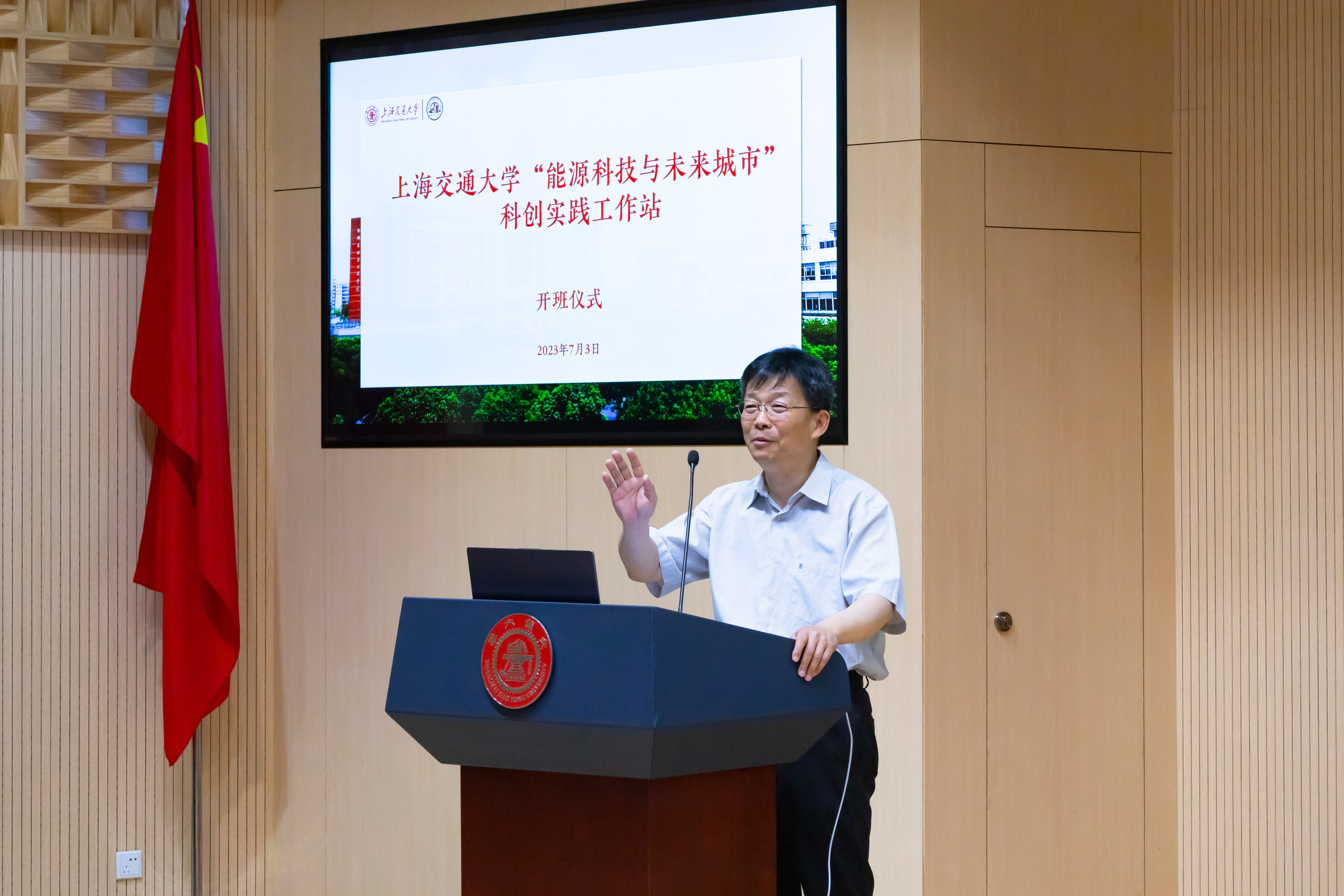 7月3日,beat365中文官方网站“能源科技与未来城市”实践工作站开班仪式在beat365中文官方网站举行。上海市科技艺术教育中心科技教育部副部长沈玉婷,上海交大beat365中文官方网站院长杜朝辉、党委副书记张执南、工作站和实践点部分指导教师及全市40余所高中的百余名学员参加了活动,活动由机械与工程学院思政教师郑思航主持。
