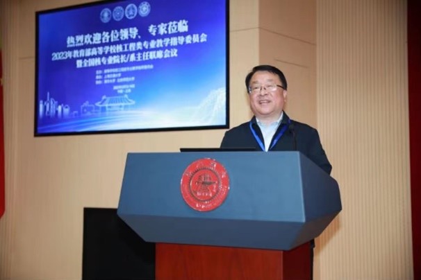 程建平在致辞中指出,在几代核工业人的接力奉献中,我国核工业从零起步,实现从“跟跑”到“并跑”“领跑”的突破,面向未来,教育工作者要带头赓续中国核工业的红色血脉,传承强核强国使命,培养社会主义事业和核事业的接班人,同时希望大家深入学习贯彻党的二十大精神,落实核专业人才培养的重要举措,加强核专业与行业融合交流,为培养高质量核工程专业人才、推进高水平核工程专业建设做出新的更大贡献。