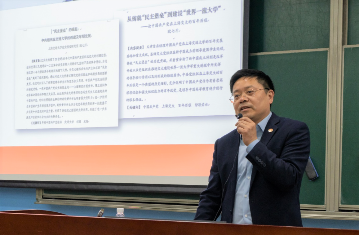 欧七斤以“从铸就‘民主堡垒’到建设‘世界一流大学’——中国共产党在上海交大的百年历程”为主题上专题党课,围绕“早期交大师生校友的革命传统”、“中共交大组织的建立与艰难发展”、“战斗在第二条战线上”、“党领导交大创建一流大学的基本历程与经验”四个方面,带领大家回顾了交通大学127年的发展历程,表示交大的历史是一部与党和国家命运紧密相连的爱国奋斗史,与民族振兴、国家富强交相辉映的创新创业史。他以杨大雄等一批杰出校友的事迹为例,讲述了革命先烈视死如归,英勇无畏的光辉故事,启迪大家从党史、校史中汲取精神养分,提高思想境界,争取早日成为优秀的共产党员。