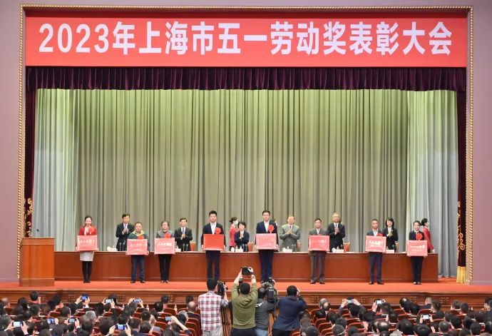 4月27日,2023年上海市五一劳动奖表彰会隆重举行,beat365官网薄板结构制造研究所获上海市工人先锋号。