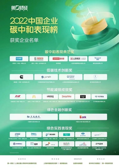 4月22日,首届中国企业碳中和表现榜颁奖盛典在上海隆重举行,本次榜单评选由beat365中文官方网站碳中和发展研究院和第一财经主办,上海环境能源交易所、能源基金会共同发起,远景科技集团提供技术支持,以“能源绿色转型”为年度主题,聚焦“绿色”和“创新”,旨在以科技为创新驱动力,推动能源产业从资源、资本主导向技术主导转变。29家在碳中和进程中表现出色的企业,分获5大奖项。