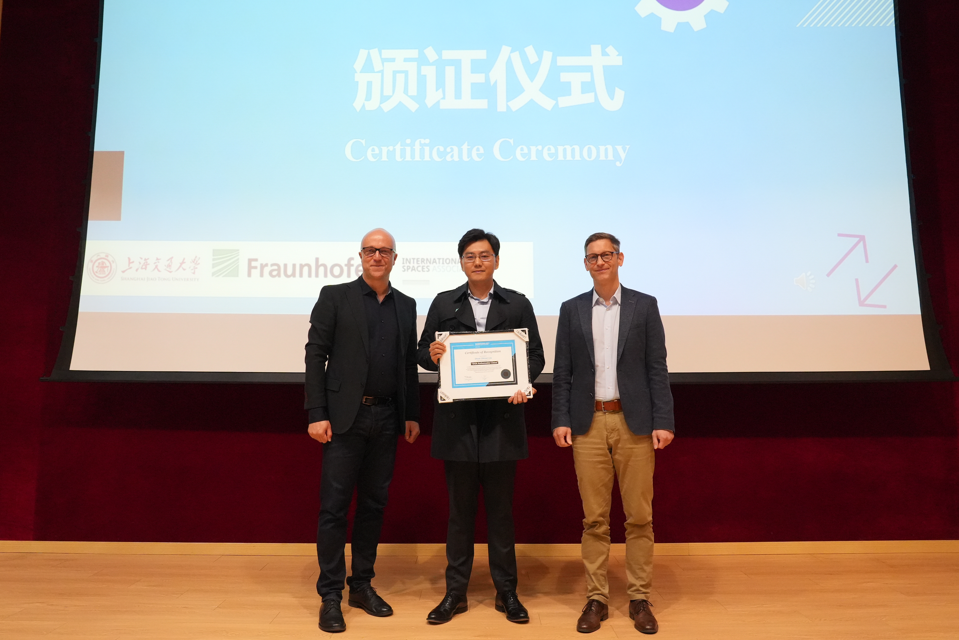Thorsten Hülsmann代表IDSA为明新国、Lars Bäumann、澳门科技大学助理教授刘帅颁发“IDS ambassador China”荣誉证书,感谢大家在推动国际数据空间与中欧合作方面做出的贡献。