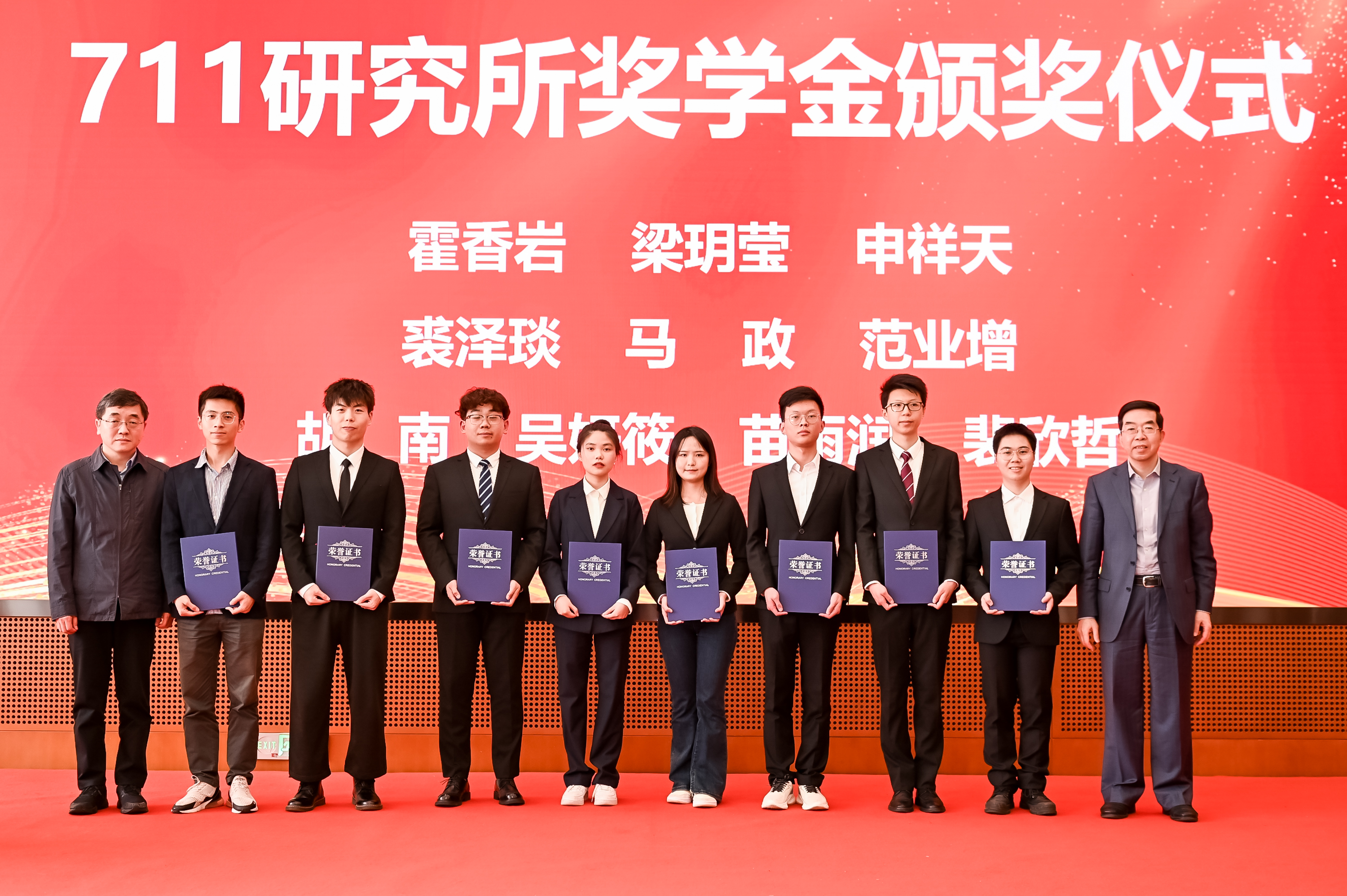 大会举行了“711研究所奖学金”颁奖仪式,10位研究生获得2022年度“711研究所奖学金”,黄震与董建福为获奖学生代表颁奖。