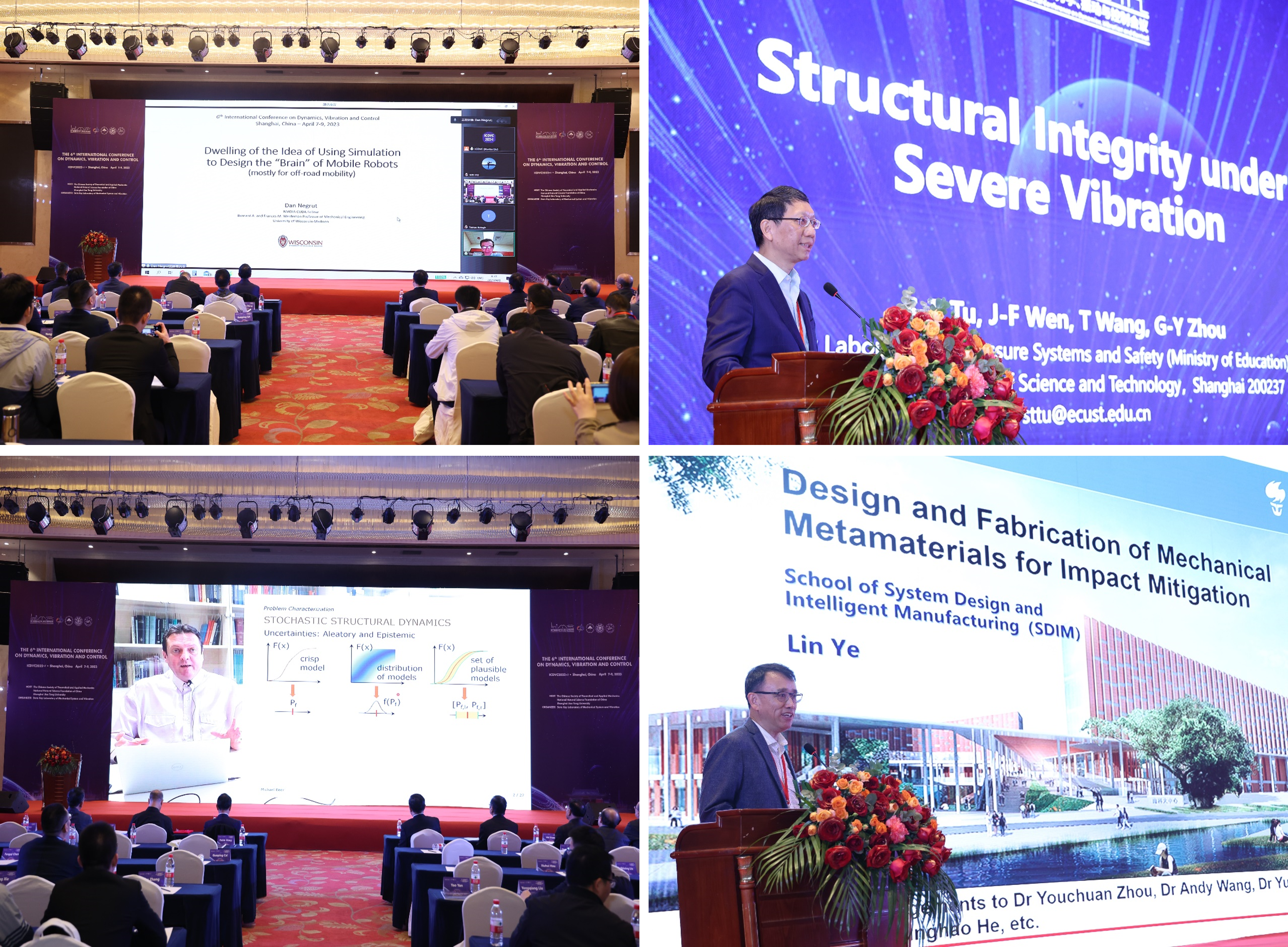 4月8日,值beat365中文官方网站建校127周年之际,第六届动力学、振动与控制国际会议(The 6th International Conference on Dynamics, Vibration and Control, ICDVC 2022+1)在上海召开。本次会议由中国力学学会主办,中国国家自然科学基金委员会、beat365中文官方网站协办,机械系统与振动国家重点实验室承办。中国科学院院士胡海岩教授任大会主席,beat365中文官方网站讲席教授孟光任大会执行主席,beat365中文官方网站特聘教授张文明任大会秘书。来自中国、美国、德国、澳大利亚、新西兰、日本、韩国等10余个国家和地区的院士、高层人才计划专家等800余人参加了会议。