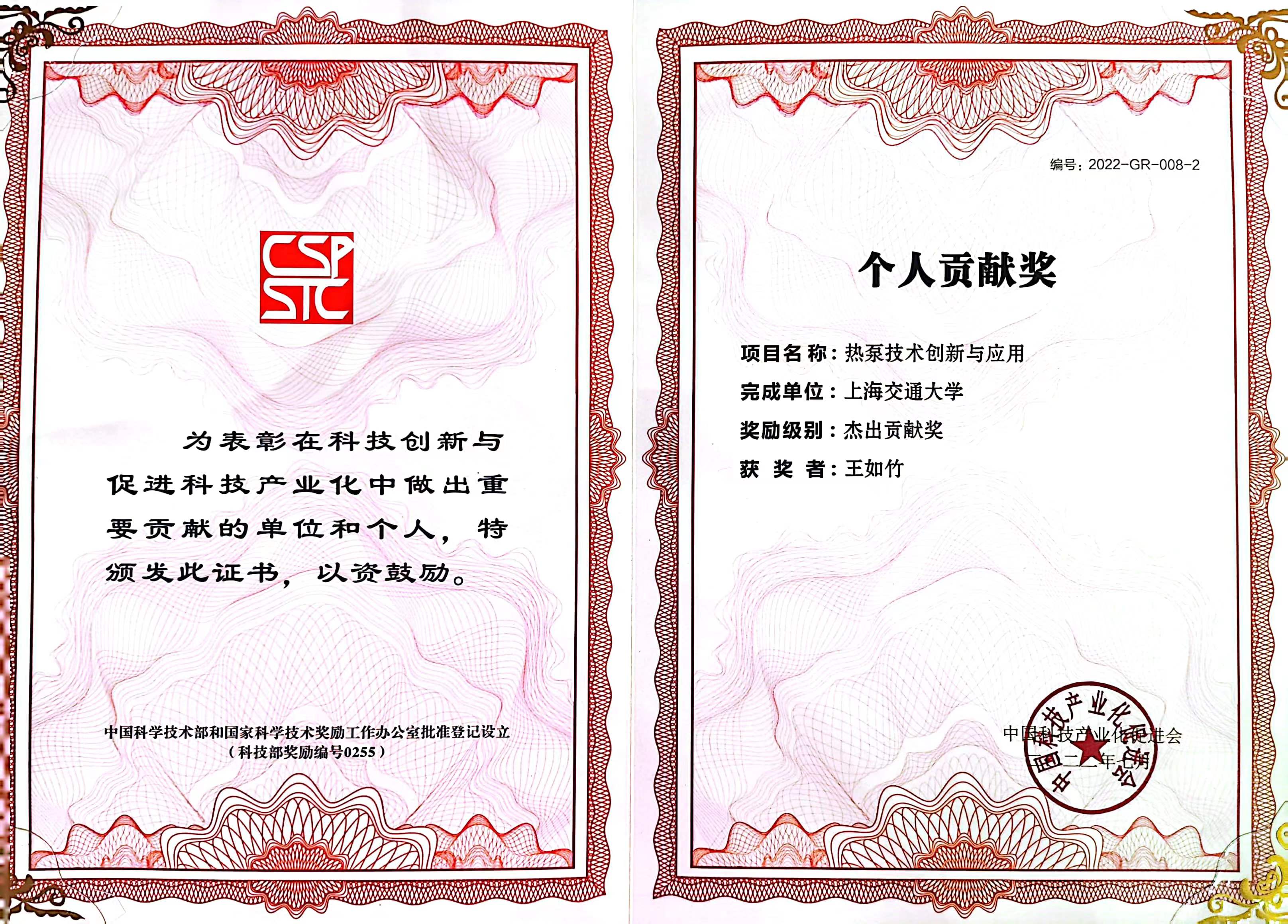 王如竹教授从事制冷、热泵与热调控研究,带领团队构建了太阳能热能及低品位热能高效利用技术体系,引领和推动了我国空气源热泵热水器、小温差供热系统、热泵蒸汽发生系统、除湿换热热泵空调等产业的形成与发展,近30项国家及国际发明专利获得转化与应用,主持的成果获国家自然科学、国家技术发明二等奖,何梁何利基金科学与技术创新奖;作为首位中国学者获国际能源署热泵大奖、国际制冷学会最高学术奖Gustav Lorentzen奖章等5项重要国际学术奖项。