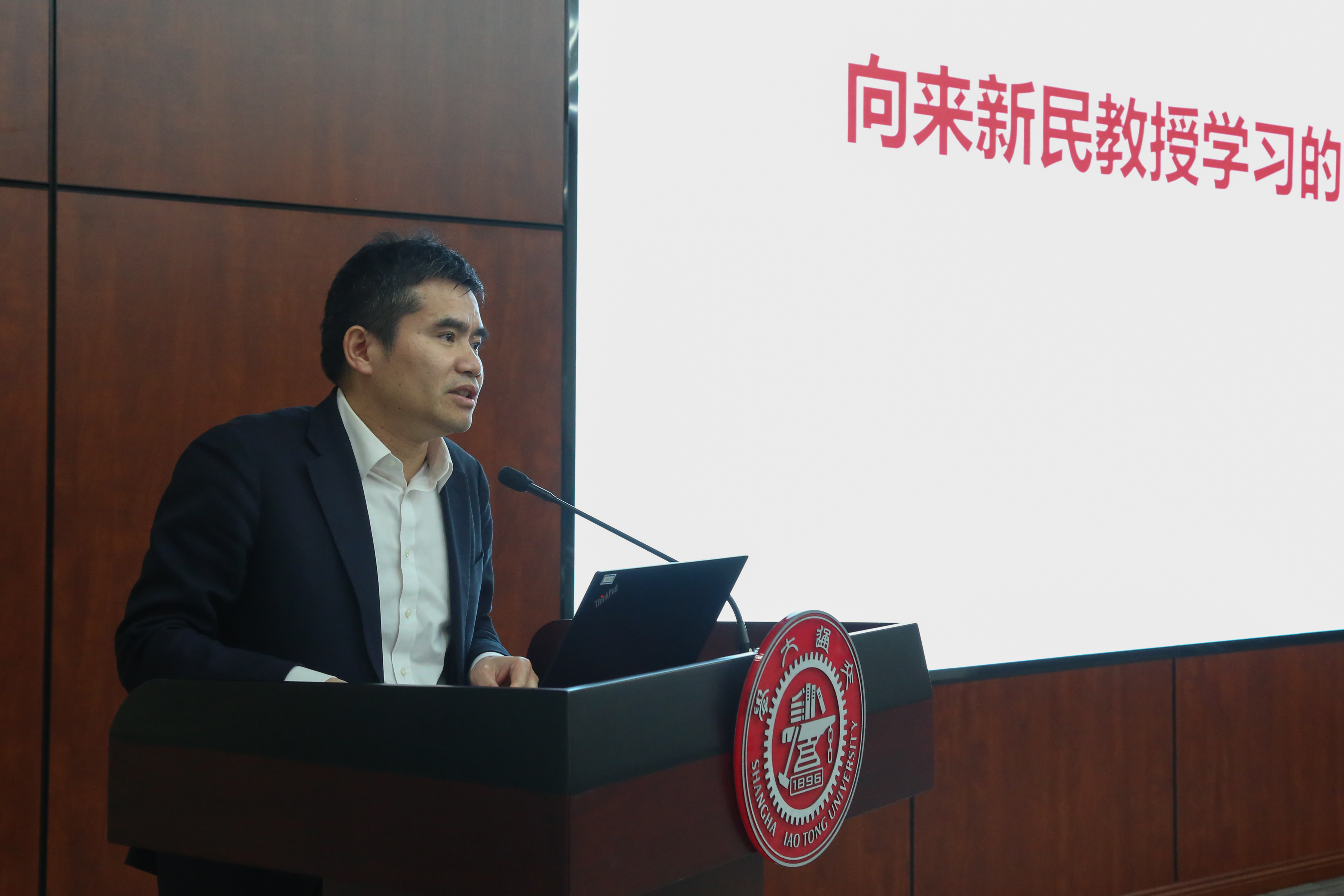 燃料电池研究所所长章俊良教授结合自己的专业研究领域,介绍了来新民教授在燃料电池关键核心技术金属双极板领域取得的成就,指出其十五年磨一剑,破解了国际难题,为燃料电池的产业化和新能源汽车的发展作出了突出贡献,要发扬他甘坐冷板凳、勇攀科研高峰的大国工匠精神;指出来新民教授甘为人梯,长期坚守教学一线,积极推动本科教学改革,注重促进学生个性化多元发展,以教育为学生增值,要学习和践行他有教无类、因材施教的教书育人理念,为科技强国建设和培养新时代拔尖创新人才贡献力量。
