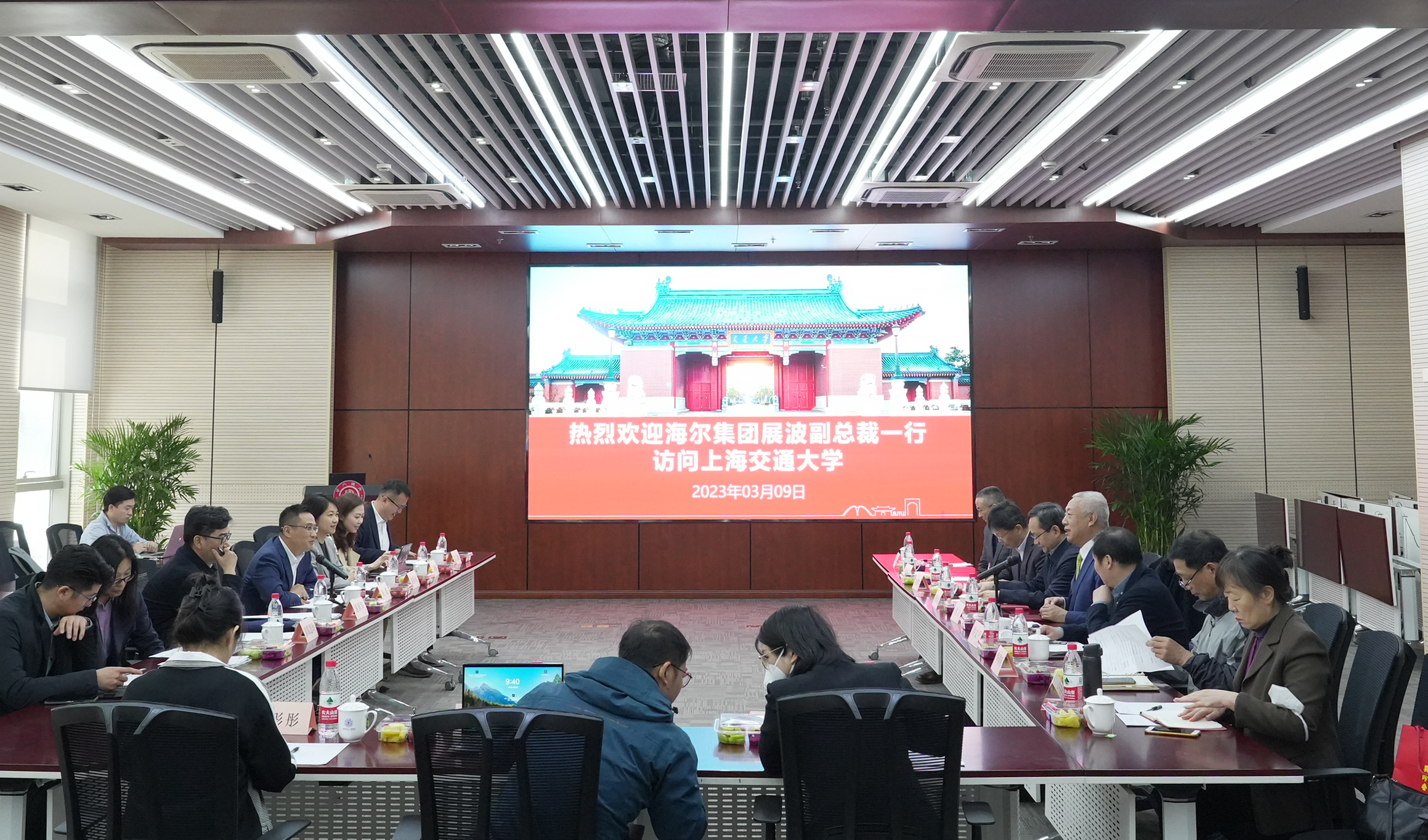 3月9日,海尔集团副总裁展波,海尔卡奥斯物联科技股份有限公司副总经理谢海琴、首席技术官盛国军,卡奥斯上海政府商务总监王雅楠,卡奥斯生态创新院校合作总监诸葛慧玲,海创汇长三角区域总经理蓝天煜,海创汇合伙人李银亮等一行访问beat365中文官方网站。beat365中文官方网站党委常委、副校长朱新远、中国工程院院士凌文、先进产业技术研究院副院长许文平、科技合作办公室主任华黎明,beat365中文官方网站院长杜朝辉、工业工程与管理系主任潘尔顺、beat365中文官方网站海尔合作项目明新国教授团队等参加了活动。