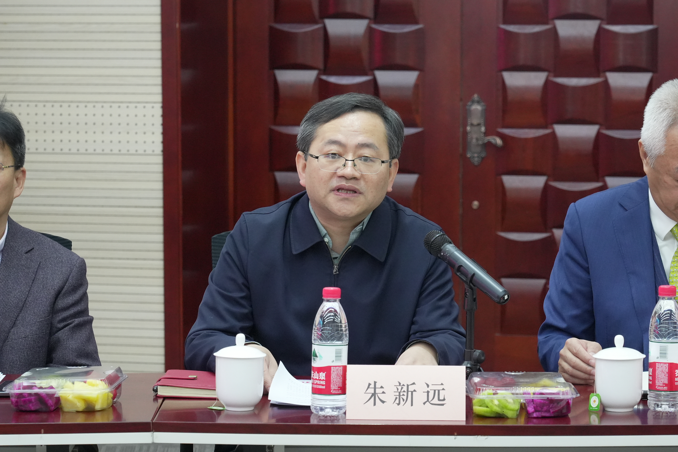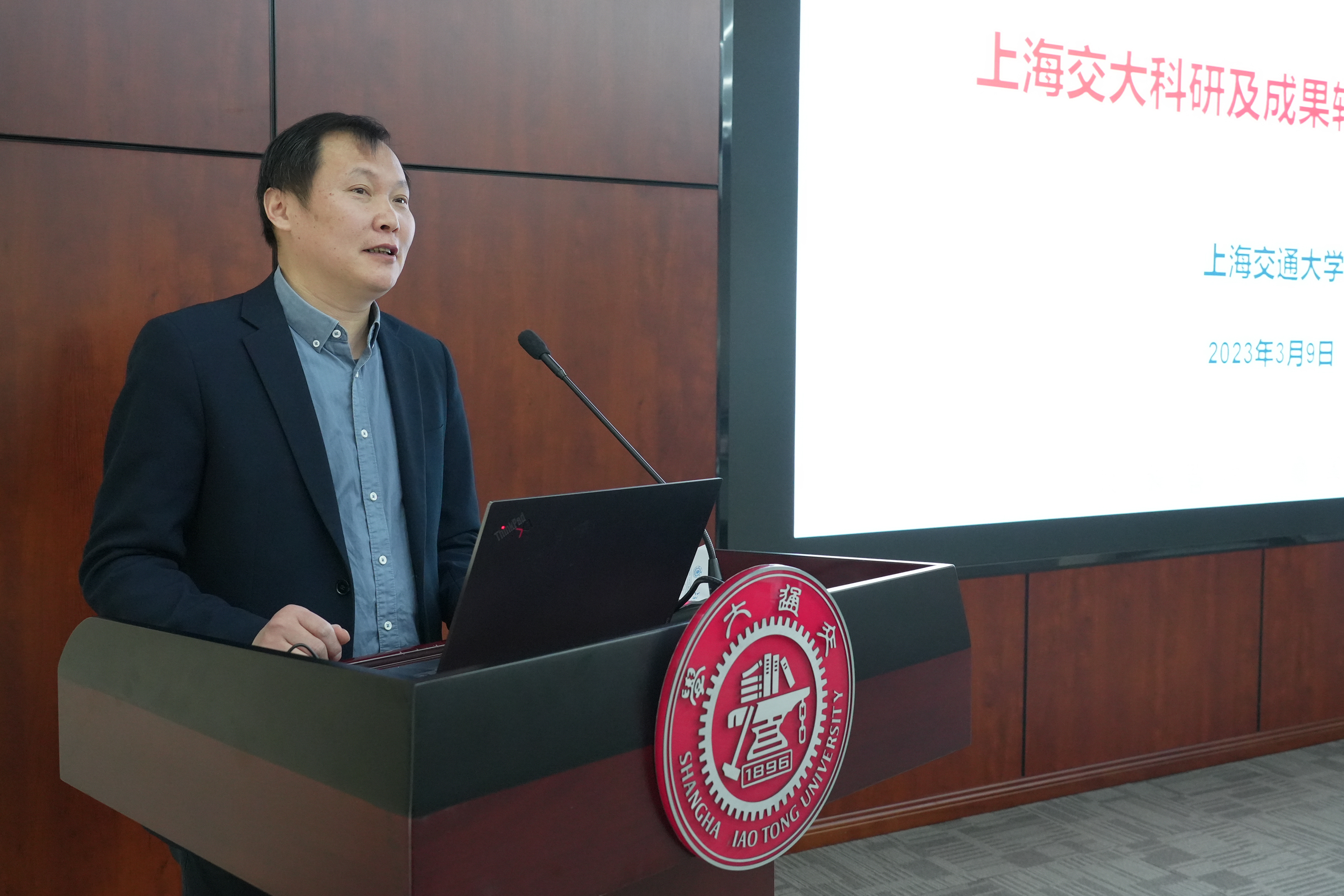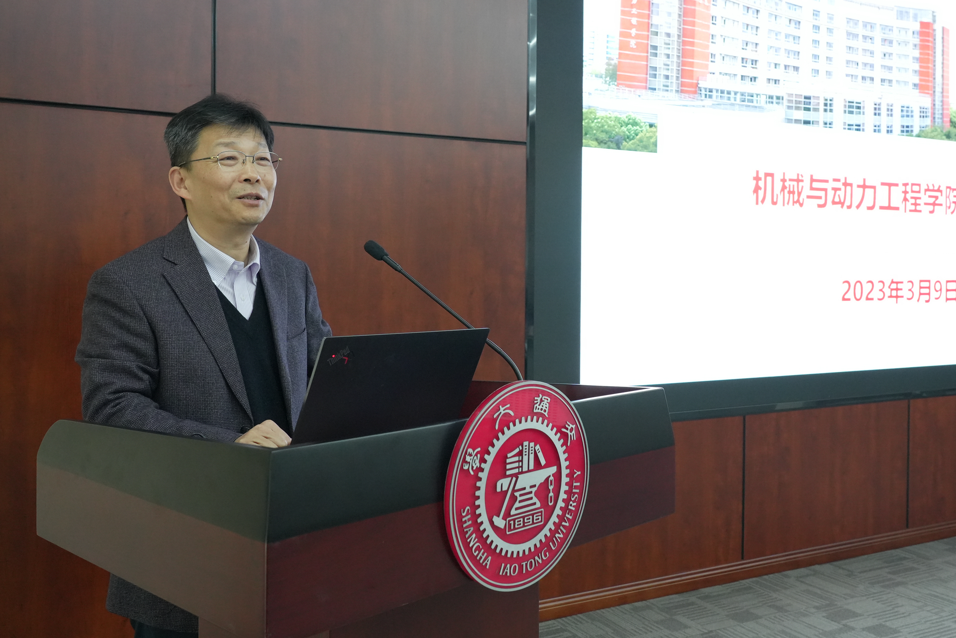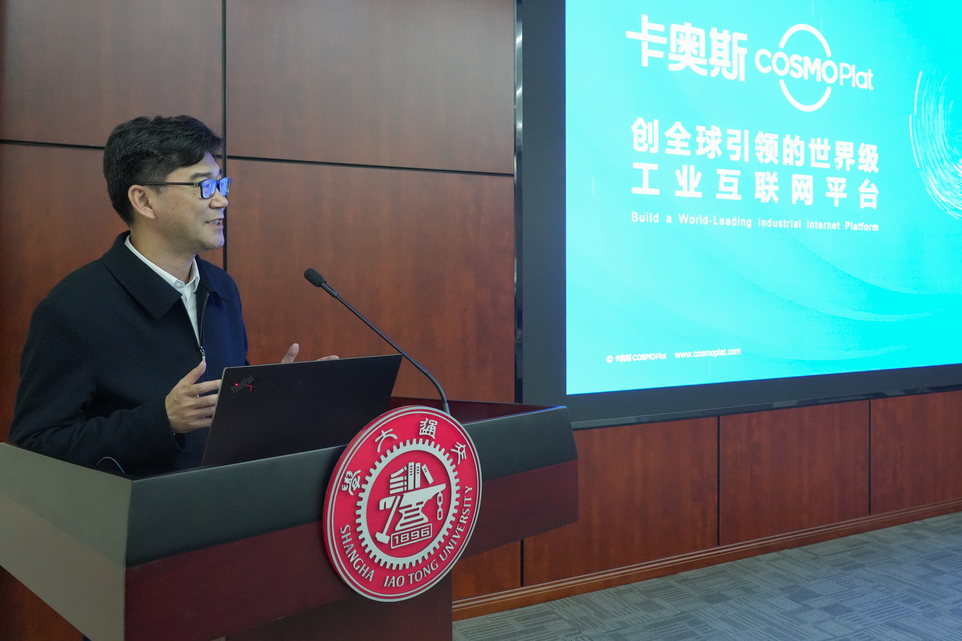 朱新远致欢迎词,感谢海尔集团长期以来对上海交大科研工作的大力支持,希望双方战略合作长效发展,全面推进海尔科技部全国重点实验室、卡奥斯工业大脑、工业AI、IDS中国实验室、南通融合基地复合人才培养等多项合作,共同打造校企合作典范,更好地为服务国家战略贡献力量。