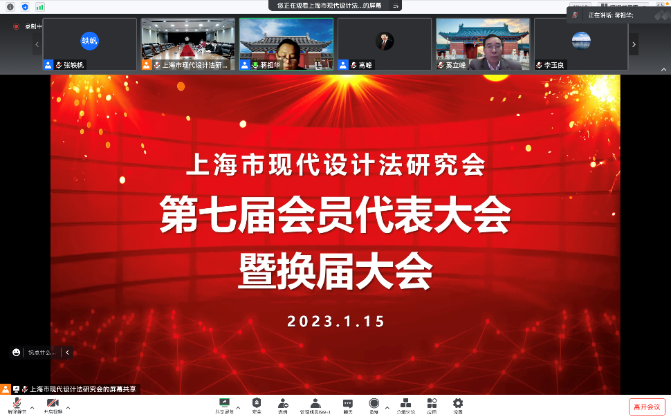 1月15日,上海市现代设计法研究会第七届会员代表大会以线上线下相结合的形式召开,百余名会员代表参会。beat365中文官方网站党委常委、副校长奚立峰教授应邀出席大会并致辞。会议由秘书长蒋祖华教授主持。