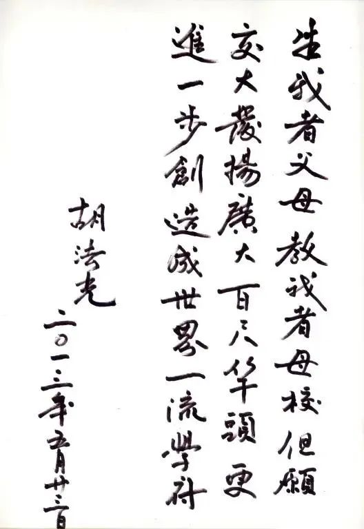 胡法光学长驾鹤仙去,但其开拓创新的精神和宽厚慈善的大爱,将陪伴着莘莘学子青春激扬的脚步,不断发扬光大。