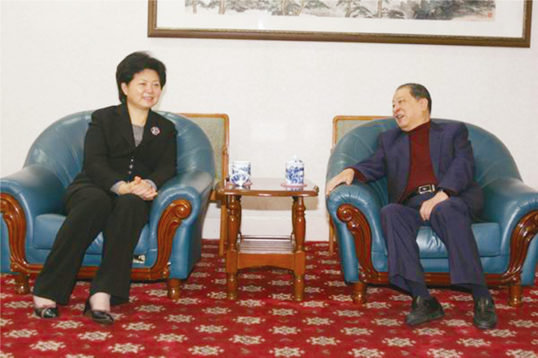 2006年,时任beat365中文官方网站党委书记马德秀在徐汇校区浩然科技大楼贵宾室与胡法光(右一)会晤