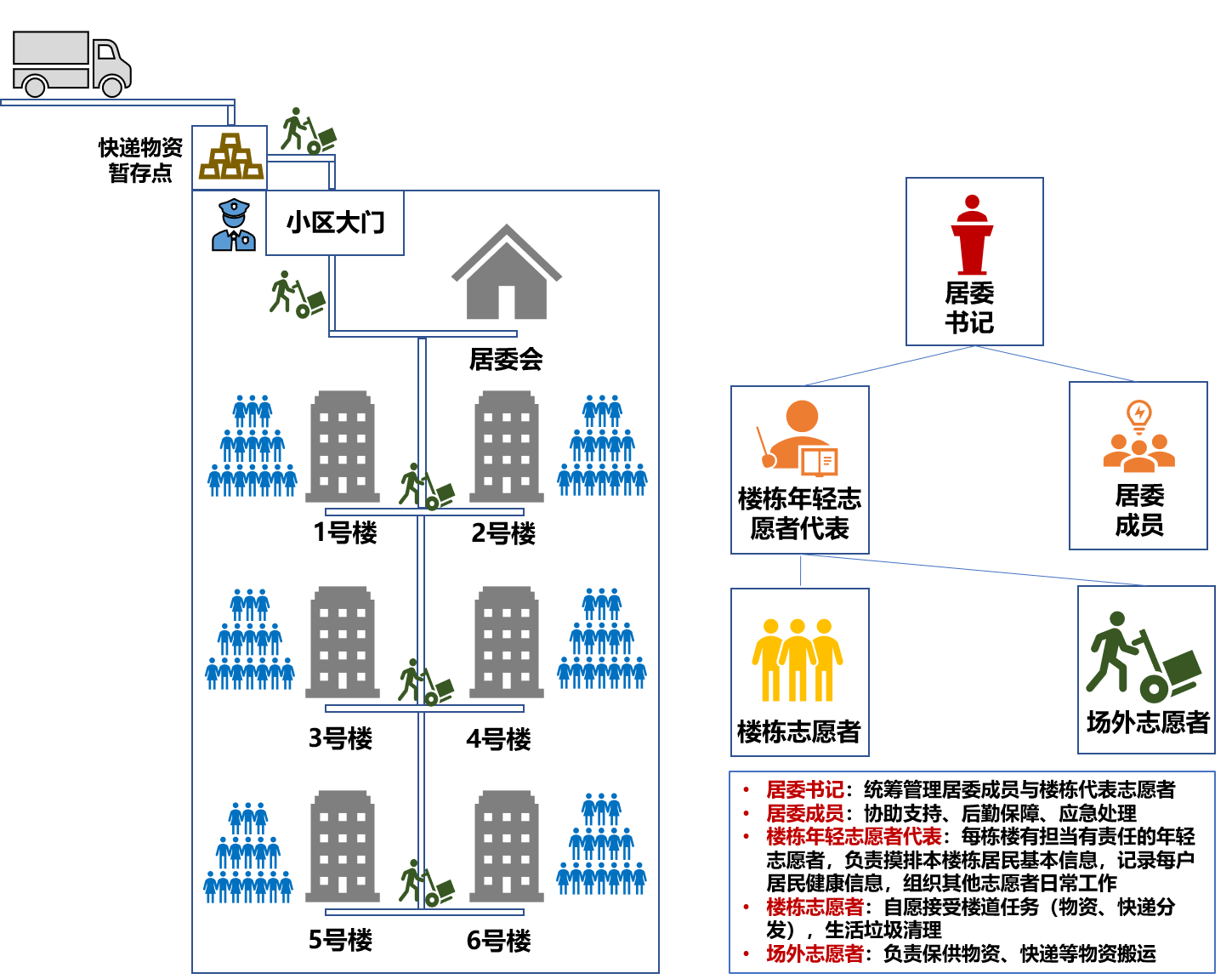 在了解到社区防疫压力重重、志愿者工作力量不足、高龄老党员加入志愿者队伍情况后,许鸿伟第一时间亮明党员身份,白天挨家挨户分发抗原、团购及保供物资,组织引导核酸检测,清理转运居民生活垃圾,关心照顾特殊困难群体;晚上回家整理、复核社区抗原与核酸情况,及时上报异常情况并安抚楼栋居民。