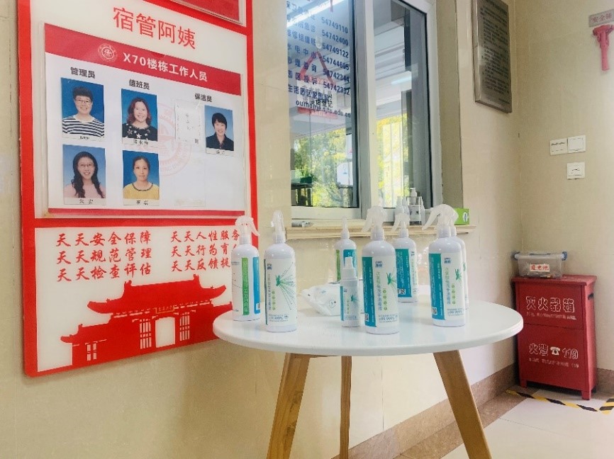 “只要母校有需要,随时可以免费提供。”研维科技(上海)有限公司由学院2014届制冷及低温工程专业博士校友颜健创立,专注于“电解水技术”相关产品的研发及应用,旗下品牌漫度®次氯酸消毒剂作为一款安全有效的卫生消毒产品,已在国内医疗机构、学校教育机构等广泛使用,是上海市高新技术企业。