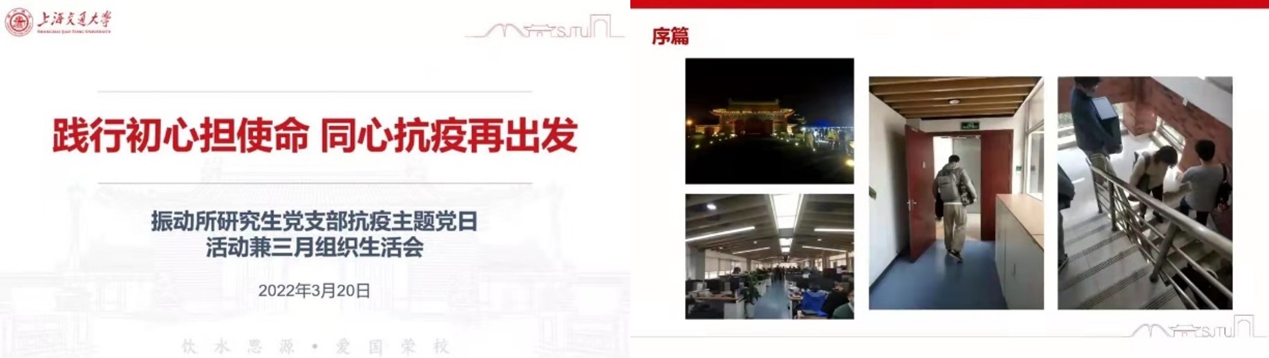 践行初心担使命,同心抗疫再出发。研究生党支部联合举办主题党日活动,号召党员凝心聚力勇敢担当,筑牢战疫先锋堡垒,践行入党誓言。蒋伟康以“共克时艰,共渡难关”为主题展开分享交流,希望大家保持良好的身心状态,合理安排好学习、科研以及生活。学生党员踊跃发言,表示要牢记青年使命,勇担时代责任。