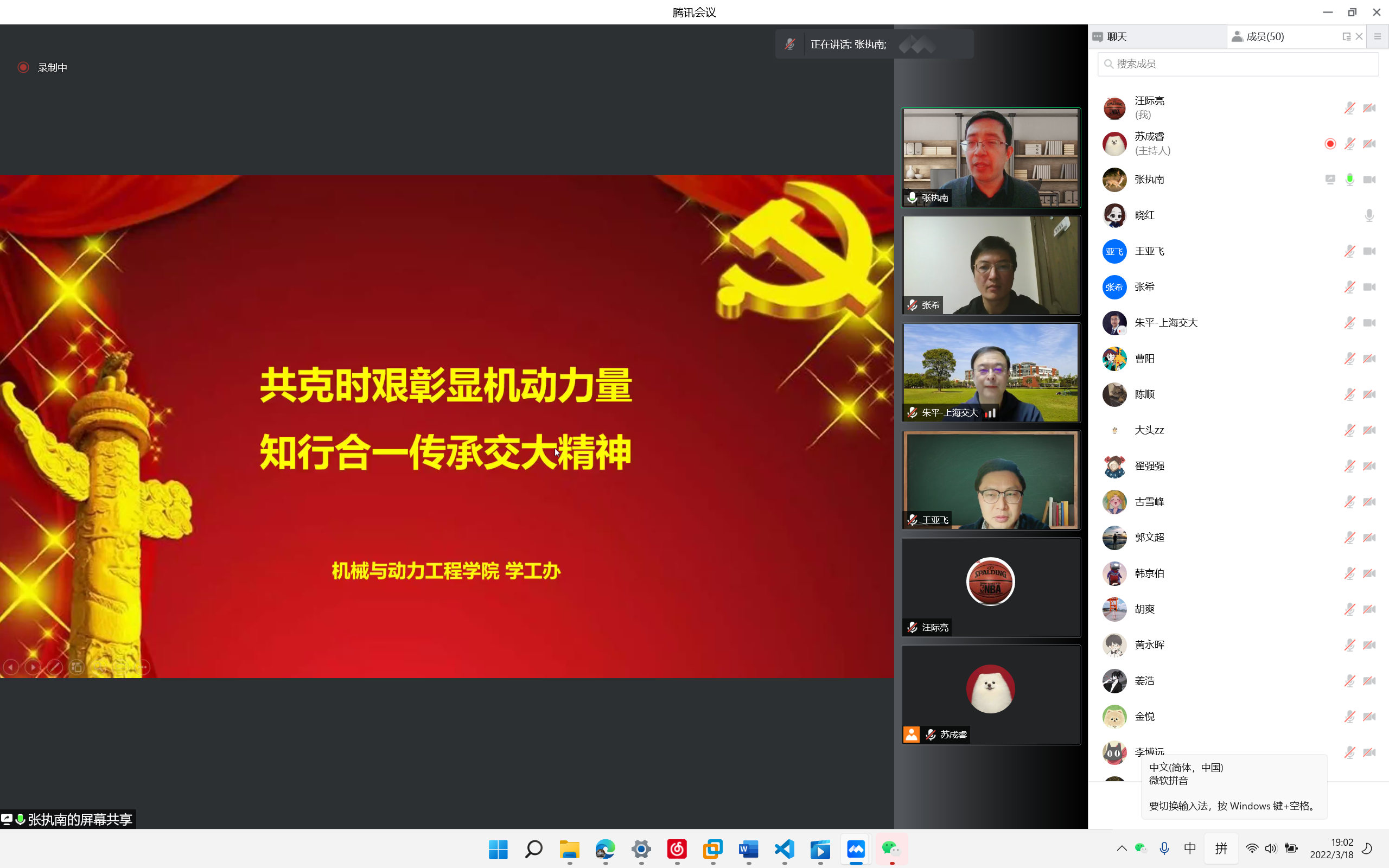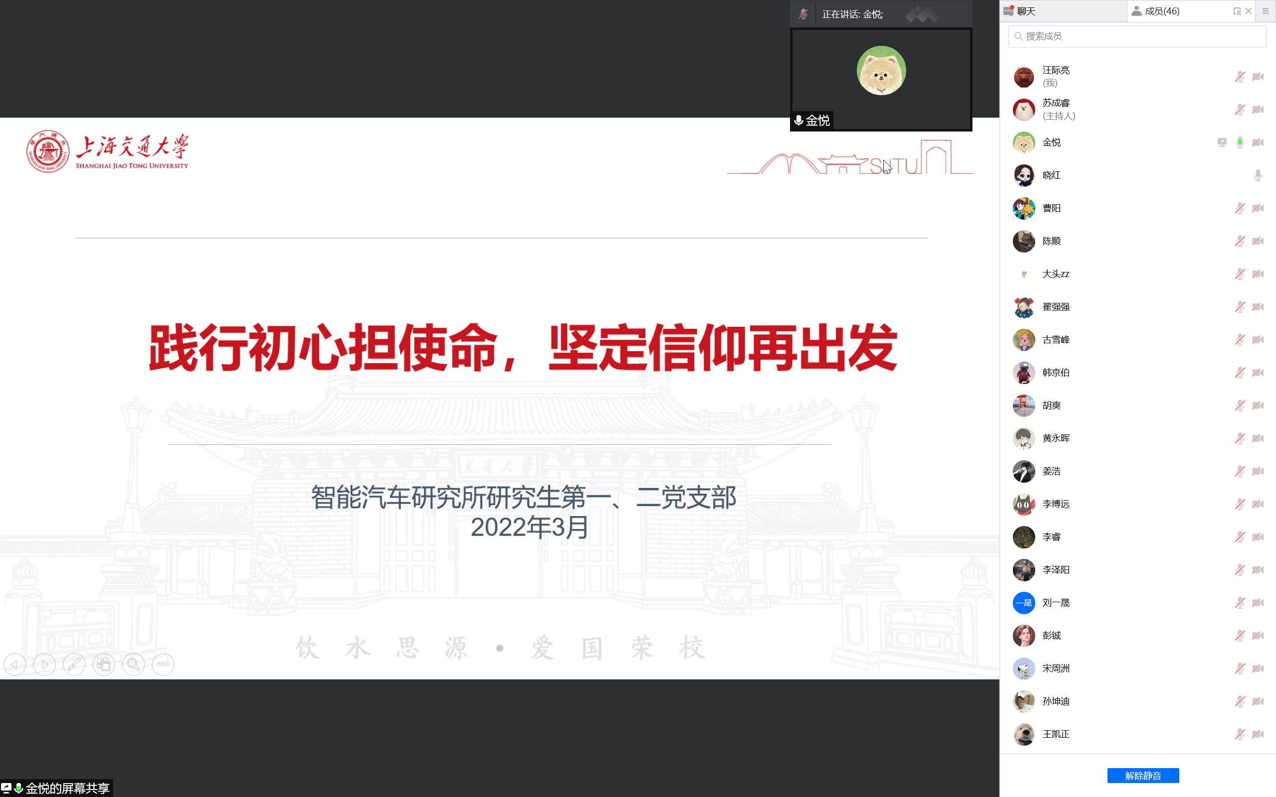 3月18日,智能汽车研究所师生党支部联合开展“践行初心担使命,坚定信仰再出发”主题组织生活会暨毕业生党员远航教育,本次组织生活会采用线上方式进行,支部全体党员参加了会议。