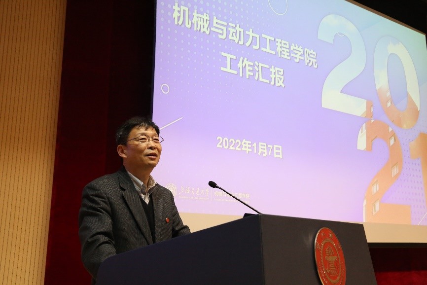 院长杜朝辉作学院领导班子工作报告。2021年,学院积极推进各项重点工作有效落实,在党的建设、三全育人、师资建设、科学研究、实验室建设等方面取得了显著成效,亮点突出,他感谢全体教师为学院发展所做的努力,并提出新一年的主要工作:以立德树人为根本,深化培养模式改革,加强学生专业情怀教育,持续提升人才培养质量;多措并举,不拘一格引进和培养青年人才,营造有利于教师潜心治学、开展高水平教学科研的环境;推动学科交叉,开展原创性的基础研究,服务国家重大战略需求,在国家级奖项上取得新突破。今年是建院二十周年,从“创建世界知名学院”到“创建世界一流学院”,凝结了师生的心血和汗水,新工程馆建设的启动为大家提供了良好的育人、科研环境,希望大家团结一心,努力奋斗,推动学院发展再上新台阶。