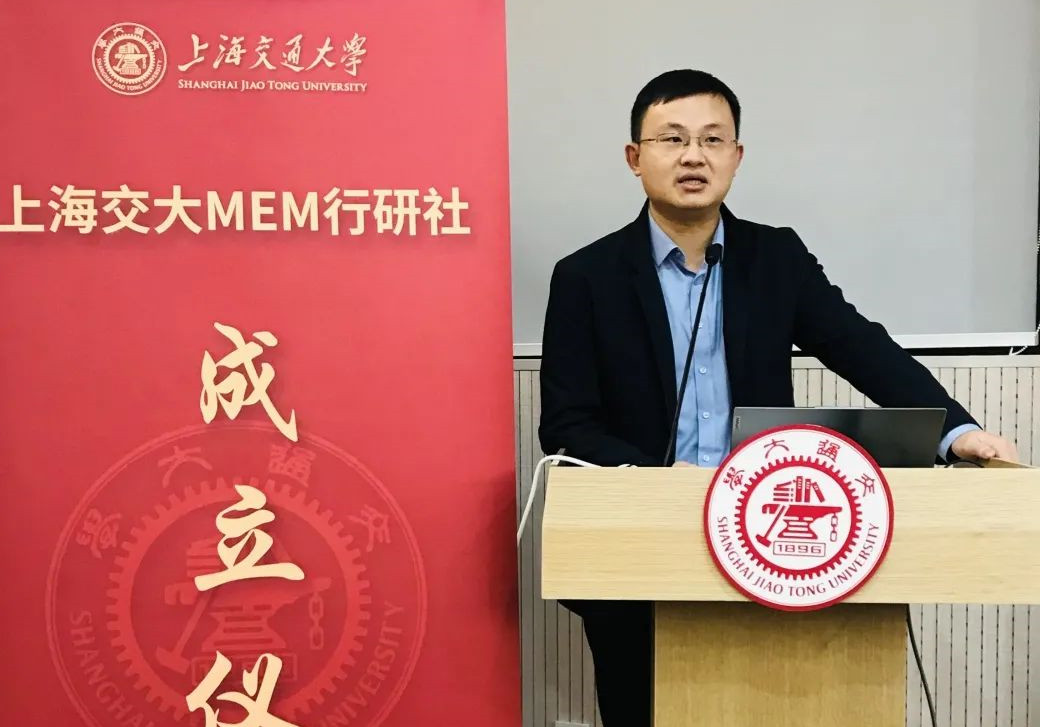 会上进行了“上海交大MEM行业研究社”揭牌仪式,李玉阳为社团指导教师孙正、潘尔顺颁发了聘书。
