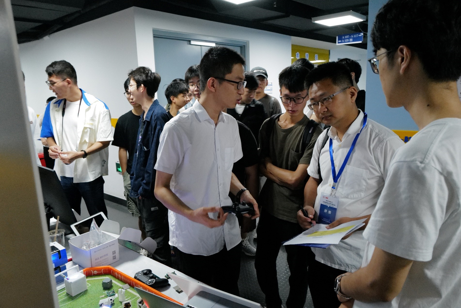 本次活动共有46个项目参展,按照“工业应用”、“智能产品”、“智慧生活”、“品质生活”四个主题分类。校内外专家和研究生新生从创作灵感、技术细节、应用场景、未来改进等多个方面与参展同学进行了充分交流,最终“高通量水稻种子荧光色选机”、“轻量化咽拭子自动采集系统”、“楼梯清扫机”、“皮影戏表演机器人”获一等奖,“皮影戏表演机器人”、“墙面空鼓检测爬壁机器人”、“智能车间清扫机器人”分别获最佳创意奖、最佳技术奖、最具商业价值奖,“共享平衡车”、“烹饪机器人系统”、“吞云吐雾-基于喷雾相变制冷的室外降温解决方案”、“基于大数据的室内空气质量及人体舒适度自适应调节系统设计”4个项目获最受欢迎奖。