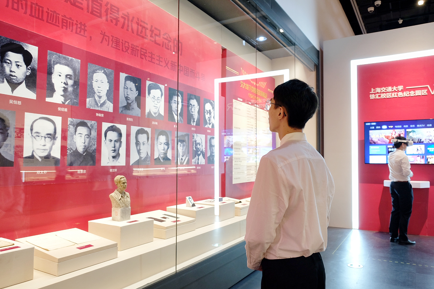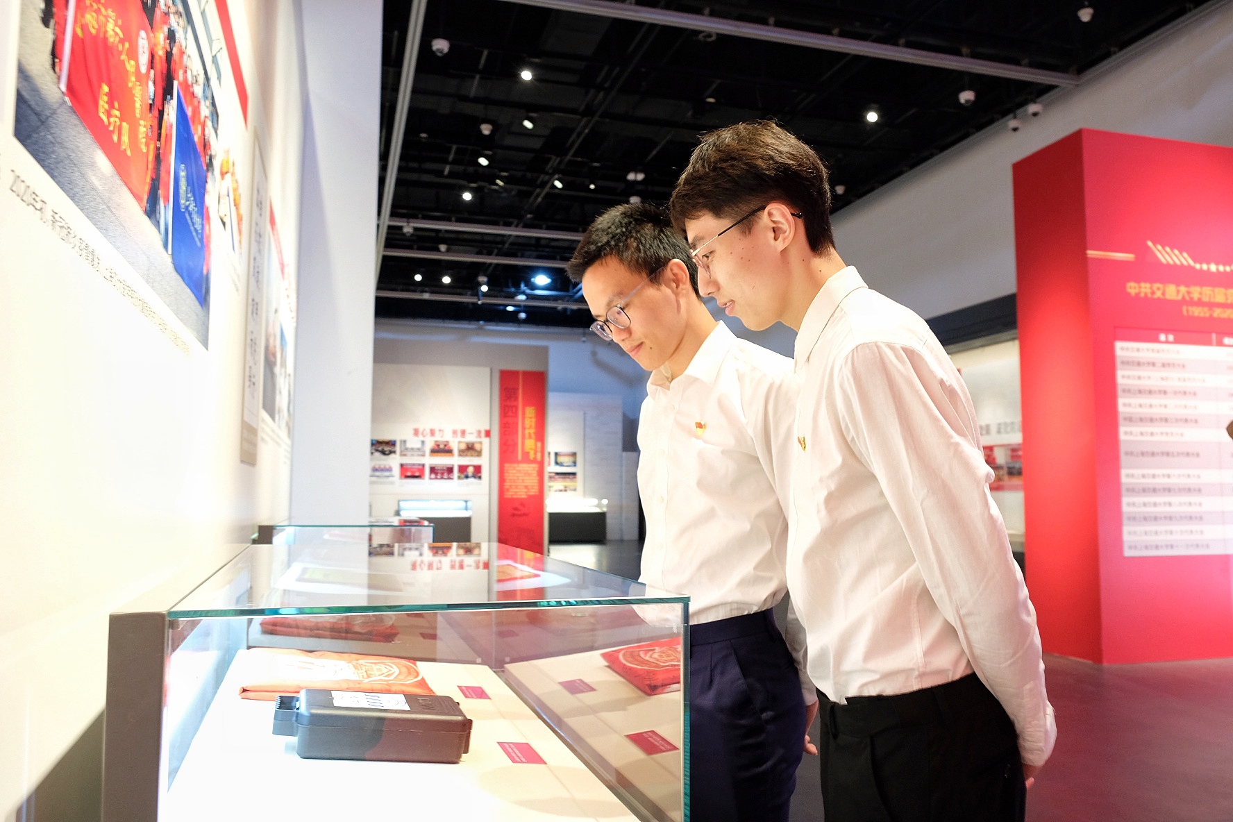 宣誓结束后,新党员参观了交大党史文献实物展。展览以“与党同心,与国同频”为主题,分为“民主堡垒”、“与新中国同行”、“敢为天下先”和“新时代腾飞”四个部分,讲述了交大党组织从无到有,从弱到强,从铸就“民主堡垒”到建设世界一流大学的非凡历程,这是百年来中国共产党扎根大学探索民族救亡之路到实践教育强国之梦的生动缩影。同学们从展览中了解了中国最早高校党支部之一的交大党支部建立的过程,也深深感受到26位革命烈士为民族独立和人民解放英勇就义的英雄气魄,西迁精神体现的顾全大局跟党走,以及新征程中交大党员凭借创新的精神、务实的态度,将交大建设为新时代一流高校,实现的惊人腾飞。