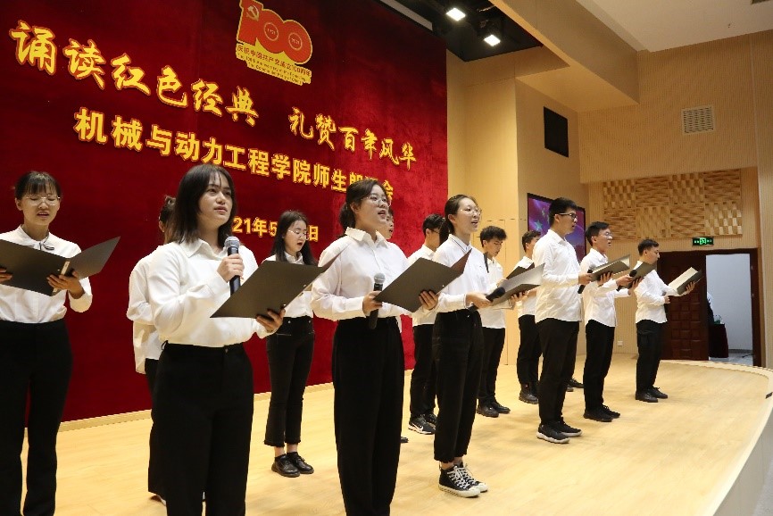 从旧中国到新时代,从内忧外患到全面小康,红色火炬在代代师生中,薪火相传,生生不息。5月12日,学院举办“诵读红色经典,礼赞百年风华”师生朗诵会,诵读《狂人日记》《青年与中国》《红船,从南湖启航》《长征组歌》《我用残损的手掌》《延安 延安》《祖国啊,我亲爱的祖国》《中华颂》《回望百年》等经典篇章,一段段掷地有声的话语,一个个感人至深的故事,一声声充满深情的呼唤,带领大家重温了党的百年峥嵘岁月,表达了对党和祖国的热爱。