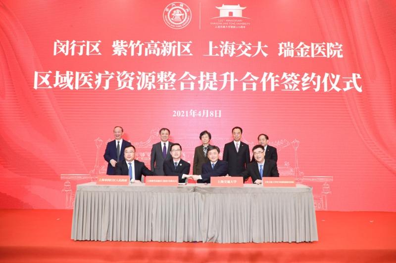 随后,陈宇剑、夏光、丁奎岭、宁光代表闵行区、紫竹高新区、上海交大、瑞金医院签署区域医疗资源整合提升合作协议。严隽琪、沈雯、杨振斌、林忠钦、倪耀明及现场嘉宾共同鉴签。