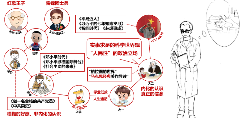 慢慢地我成了一名发展对象,在交大通识课上我细细思读了《1844年经济学哲学手稿》《德意志意识形态》《共产党宣言》等文章,马克思对工人、对人本身的那种本体思考和关切激起了我的共鸣,让我第一次在党的思想源流中找到了落脚点,那种“普通人”情结就变得更加强烈。