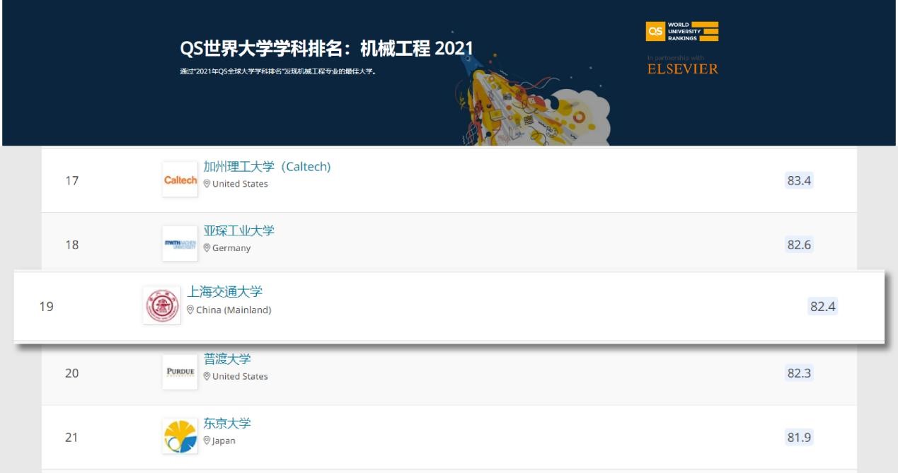 日前,QS发布2021年度世界大学学科排名,上海交大beat365中文官方网站的机械工程(Mechanical Engineering)学科位列第19,是交大排名最好的学科。