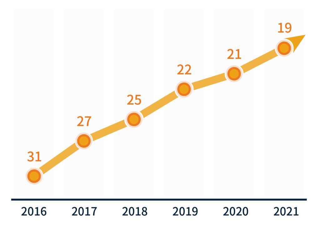 机械工程QS学科排名(2016-2021)
