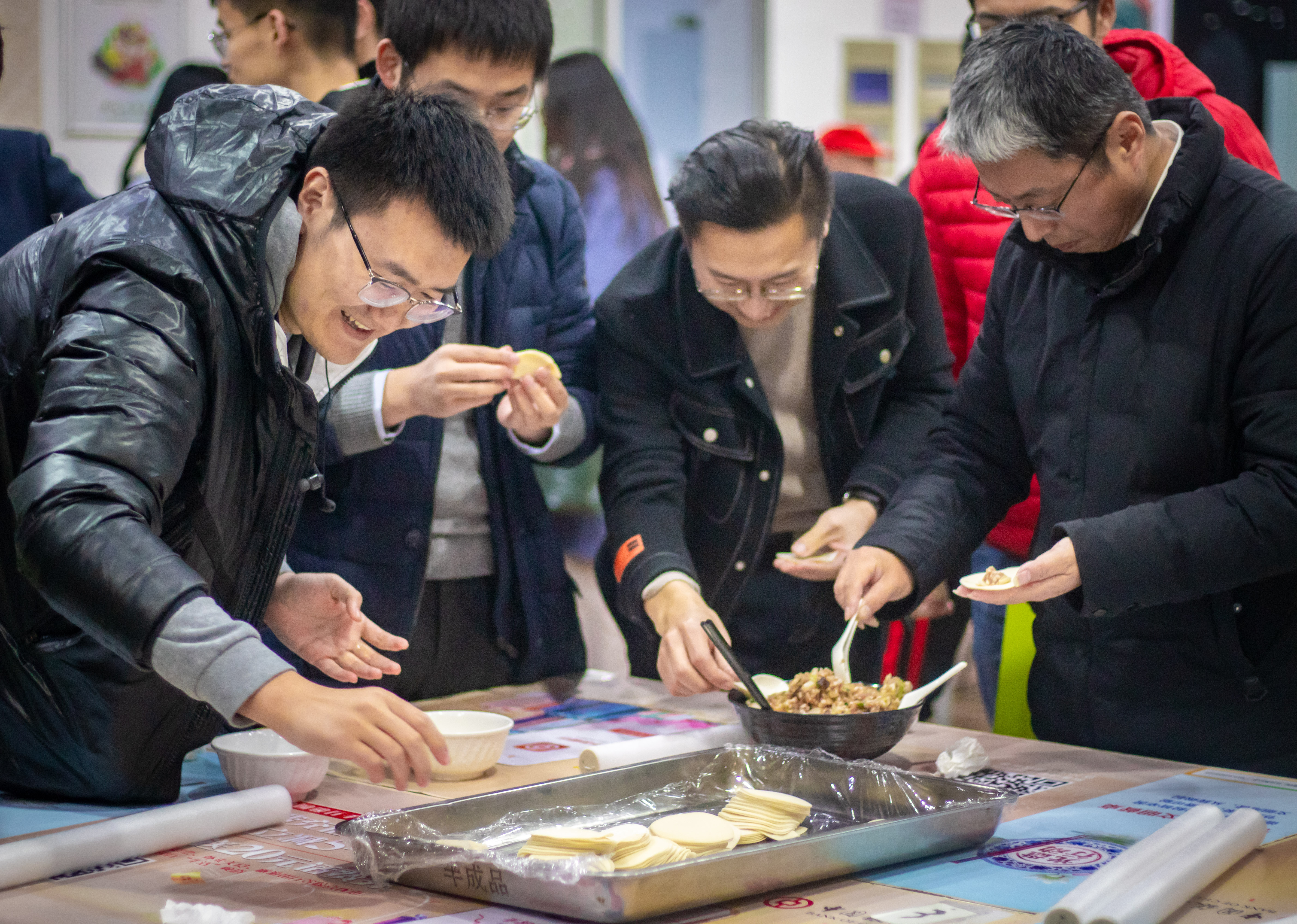 师生现场包饺子,感受家乡特色,场面热闹非凡。大家带来了舞蹈、歌曲、乐器等才艺,期间穿插了趣味游戏,现场充满了欢声笑语。
