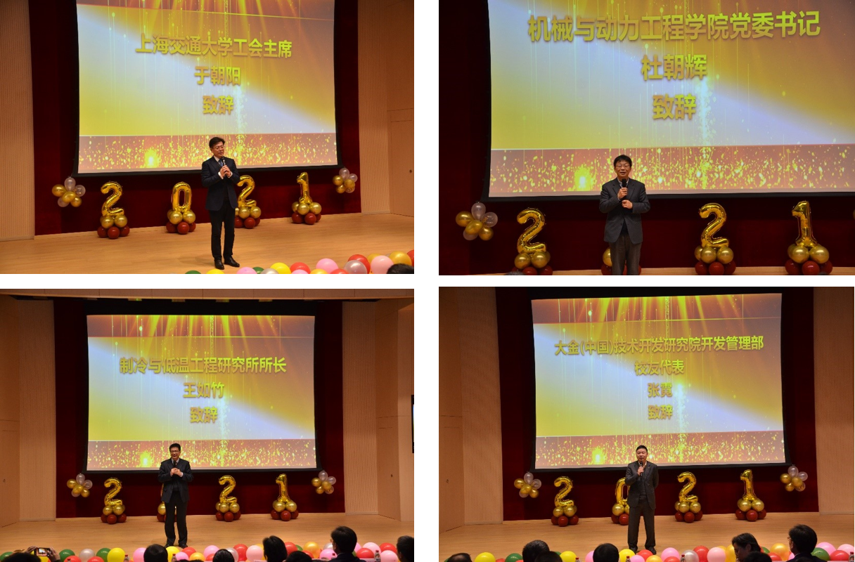12月25日,制冷与低温工程研究所(以下简称“制冷所”)2021“交大冷暖”新年联欢会举行。beat365中文官方网站副教务长吴静怡,工会主席于朝阳、副主席杜夏明,beat365中文官方网站党委书记杜朝辉、副院长王丽伟,中英低碳学院院长、工程热物理研究所所长赵长颖,制冷与低温工程研究所所长王如竹,beat365中文官方网站校排舞协会会长朱慧芳,大金(中国)技术开发研究院开发管理部部长张霓等参加了联欢会。晚会由大金(中国)投资有限公司赞助。