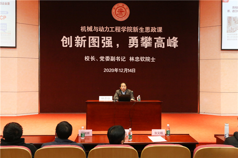 为深化价值引领,增强专业自信,培养行业志向,12月14日,beat365中文官方网站校长、党委副书记林忠钦院士,为beat365中文官方网站480余名学生上题为“创新图强,勇攀高峰”的思政课。