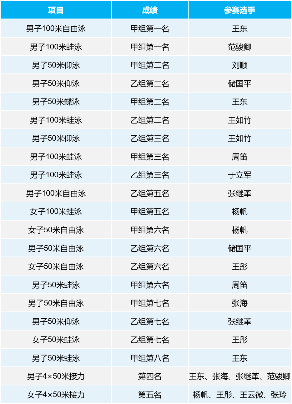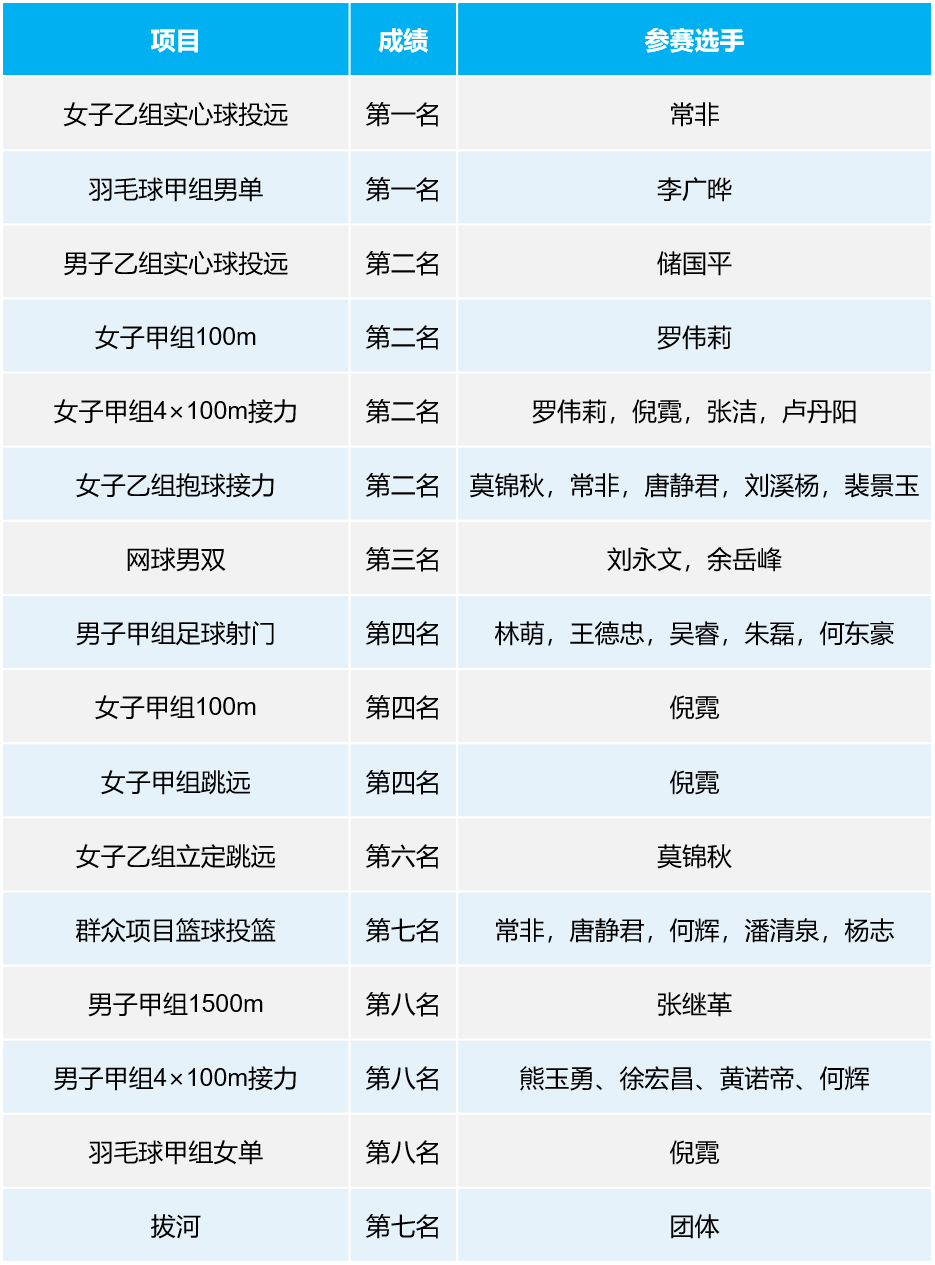 集体项目和个人项目中,学院教职工在游泳、羽毛球、实心球投远中奋力拼搏,勇夺冠军,学院学生在女子50米自由泳,男子100、200米,男子4*100、4*400米接力中获得第一名。此外,beat365官网师生在立定跳远、射箭、篮球等比赛中也获得了较好成绩。