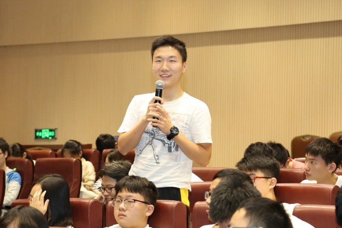 王晶介绍了全国大学生机械创新设计大赛的发展历程以及往届大赛的主题与内容,表示大赛重视学生独立自主知识产权设计与研发能力的提升,为同学们的奇思妙想、自主实践提供了广阔的平台。他从“对学生的知识面要求广”、“综合设计能力的全面锻炼”、“设计作品与实际应用紧密结合”、“大赛营造的文化境界”、“新工科建设的重要抓手”五方面介绍了大赛的情况,展示了往届参赛作品的视频,从机械设计、作品展示、创新等角度启发同学们积极思考。他指出,举办全国大学生机械创新设计大赛不仅可以促进高校创新实验室的建设,拓展实践教学内容的广度与深度,提升教师教学和工程实践能力,培养学生创新精神和实践能力,希望同学们吸取前人机械设计经验,了解同辈人的构想,提升自身设计能力,发掘更加巧妙的机械结构和想法。会上,学生还与王晶教授进行了交流和讨论。