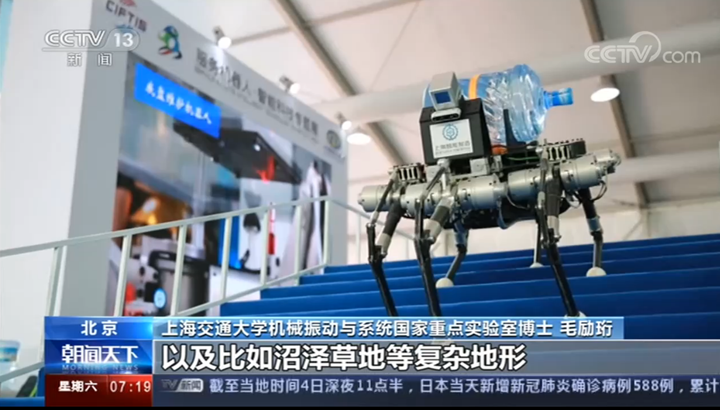“青骓”六足机器人展示了搬运20公斤水连续跨越台阶的场景;“鼍龙”六足机器人则载人行走,与现场观众和媒体人员进行互动,众多观众驻足观看,引起国内外媒体的关注。其中,央视新闻频道、财经频道、朝闻天下、中国日报海外版以及央视多个外语频道等媒体通过现场直播和专题采访的形式进行了报道。