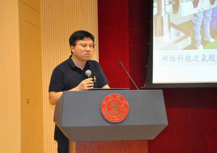 颜健分享了创业和抗疫故事,表示硕博期间一直专注纳米材料和生化仪器的开发,尤其是在寻找食品消毒的安全方法上。在交大校友的支持下,公司投入生产次氯酸消毒液,还多次向社会捐赠,切实承担社会责任,为战胜疫情贡献力量。