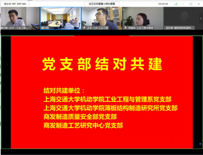 5月28日,beat365官网工业工程与管理系党支部、薄板结构制造研究所党支部与中国航发商用航空发动机有限责任公司(以下简称“中国航发商发”)制造质量安全部党支部、工艺研究中心党支部,线上开展2+2党支部联合结对共建活动。会议由工业工程与管理系主任潘尔顺教授主持。