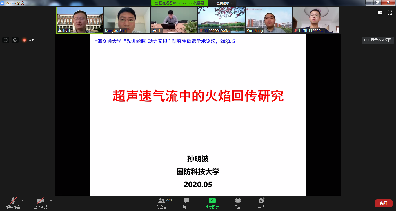 国防科学技术大学孙明波教授做题为“超声速气流中的火焰回传研究”的报告,介绍了目前国内外高超声速飞行器研究背景以及超声速下的非稳态燃烧现象,并从实验研究与数值模拟两方面详细讲解了火焰回传过程。