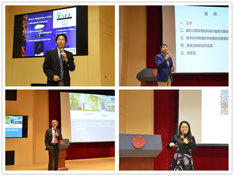 特邀报告环节,日本山口大学Masato MIKAMI教授、北京航空航天大学孙晓峰教授、米兰理工学院Andrea Matta教授、上海大学张建华教授围绕“微重力液滴燃烧实验”“科研工作中脱离‘范式’思维”“制造系统实时生产的控制网络”和“大面积高分辨微纳制造”等带来精彩分享,介绍了学术前沿成果及科研技术难题,鼓励同学们打破传统思维困境,寻找创新思路,勤勉学习,厚积薄发。