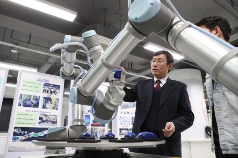 王皓教授带领团队研发中德合作的人机共融制造系统。 图片来源:上观新闻 赖鑫琳摄