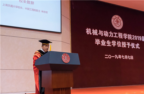 林忠钦围绕“致力于成为工程科技领军人才”,寄语2019届毕业生要有高度的社会责任感,怀揣报国之心;要扎根实践,捕捉社会的发展需求,用学到的理论知识解决现实问题;要放眼世界,更应该跨文化理解,乐于跟他人交流合作;要敢于创新,始终保持对未知世界的好奇心;要勇于坚守追梦之心,不断超越自我,为时代做出贡献。
