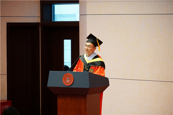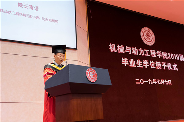 杜朝辉带领同学们回顾了大学四年中具有代表性的时刻,介绍了本届优秀毕业生的去向。他建议同学们要永远保持好奇心,把学习当作终身的习惯;要砥砺进取之心,把奋斗当作前进的动力;要涵养爱国之心,把报国当作自己永恒的追求。